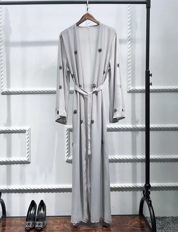 Caftan élégant brodé d’or rétro robe blanche à col en V