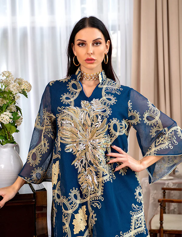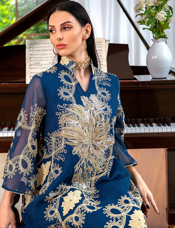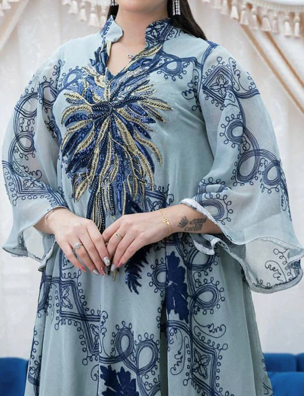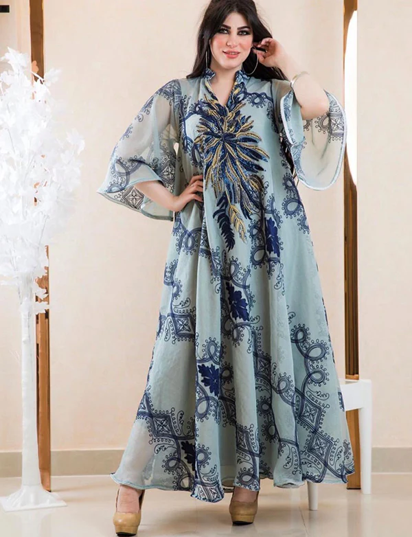 A-Line Manches Longues imprimées Arabe Maxi Abaya Robe