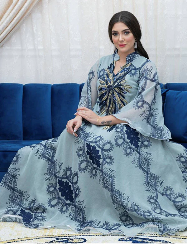 Broderie à paillettes Blanc Caftan Femmes Robe Arabe