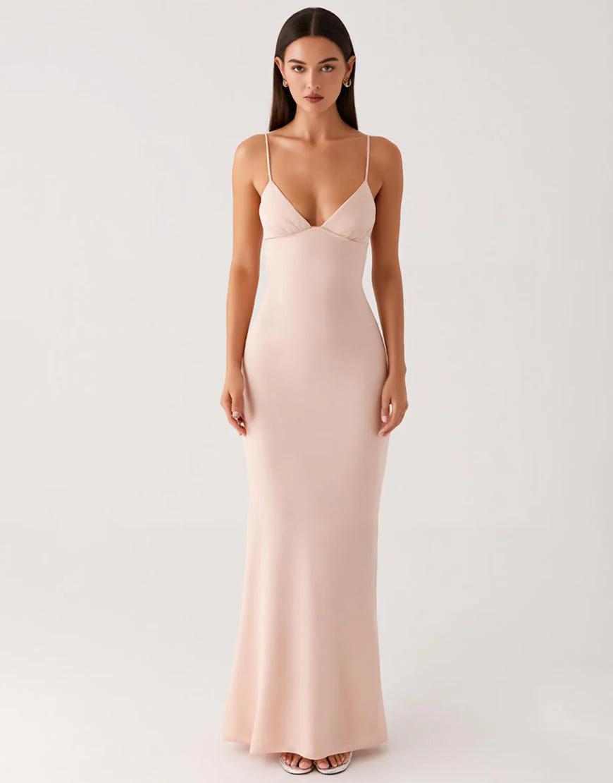 Abricot Mousseline Spaghetti Bretelles Fourreau Robe de Soirée Longue