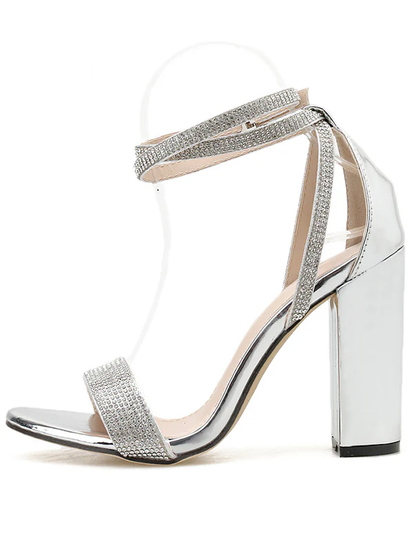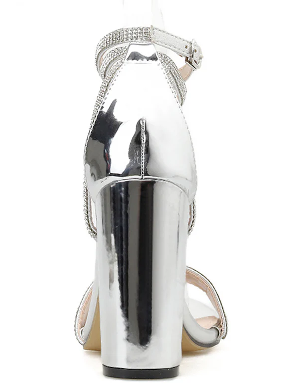 Argent Bling Cristal Sandales Talon