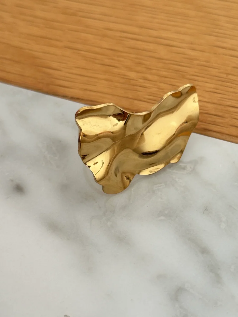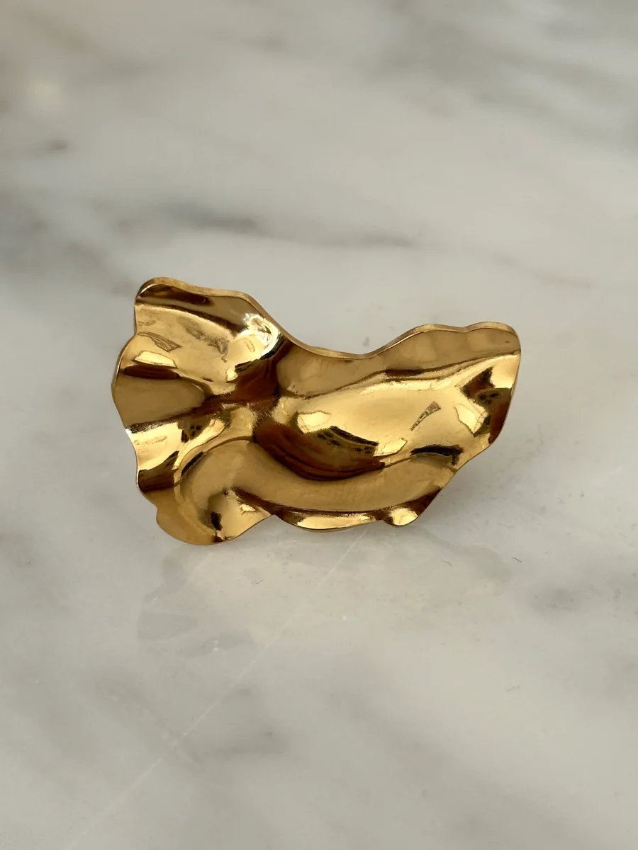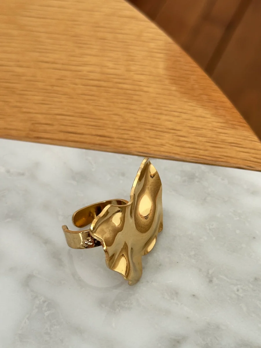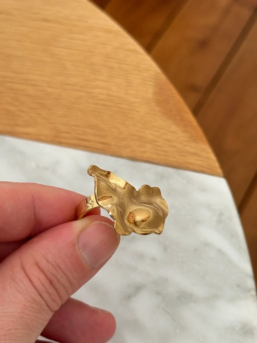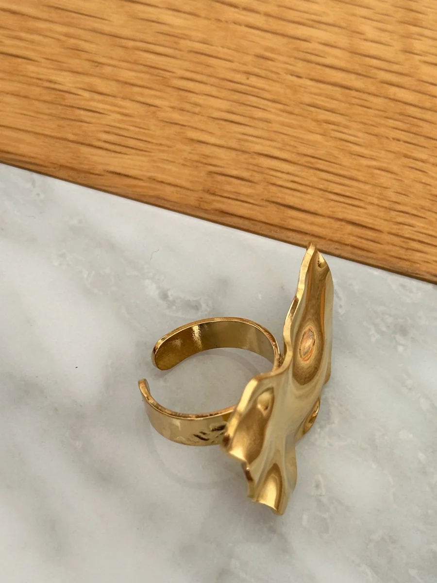 Bague dorée en rectangle à vagues et effet martelé Bague en acier inoxydable : sa couleur ne noircit pas au contact de l’eau Sans risque allergène