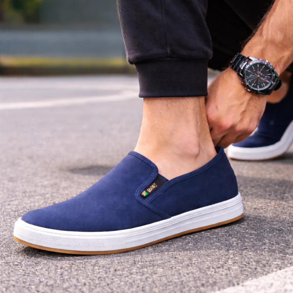 Adoptez un look sobre et moderne avec ces chaussures slip-on bleu marine. Faciles à enfiler, légères et polyvalentes, elles accompagnent aussi bien vos journées actives que vos moments de détente avec un confort agréable au quotidien.