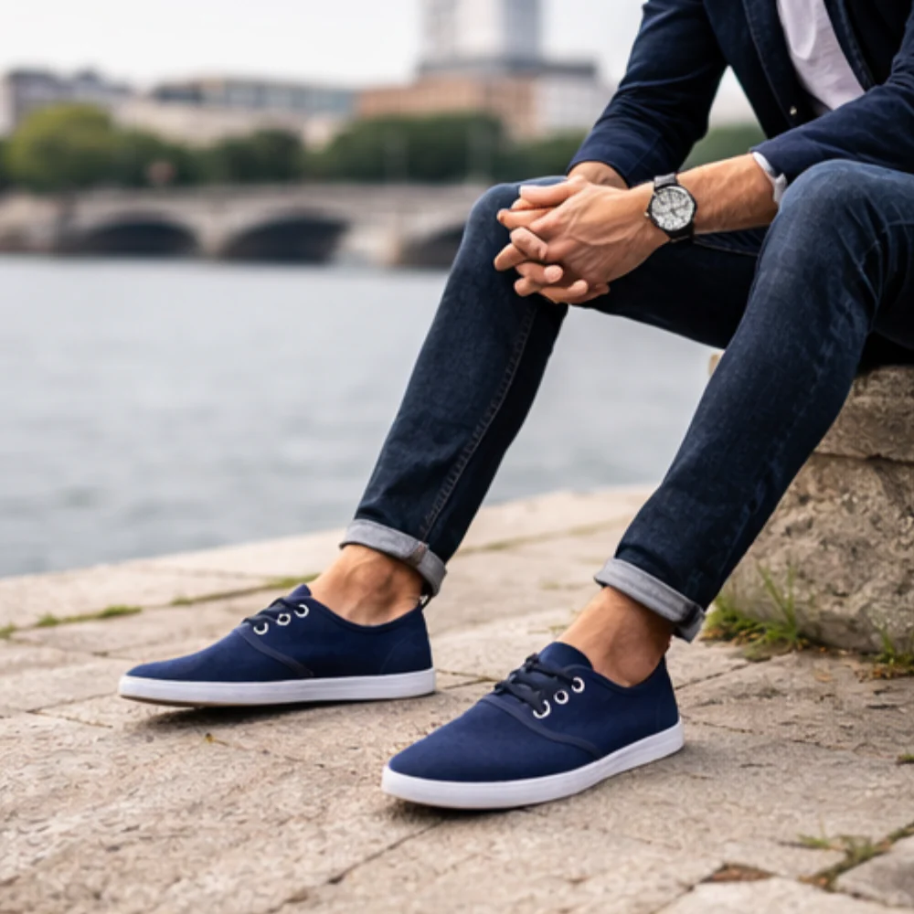 Adoptez un look épuré avec ces chaussures bleu marine en toile. Légères, confortables et faciles à assortir, elles sont idéales pour un usage quotidien, en ville comme en week-end.