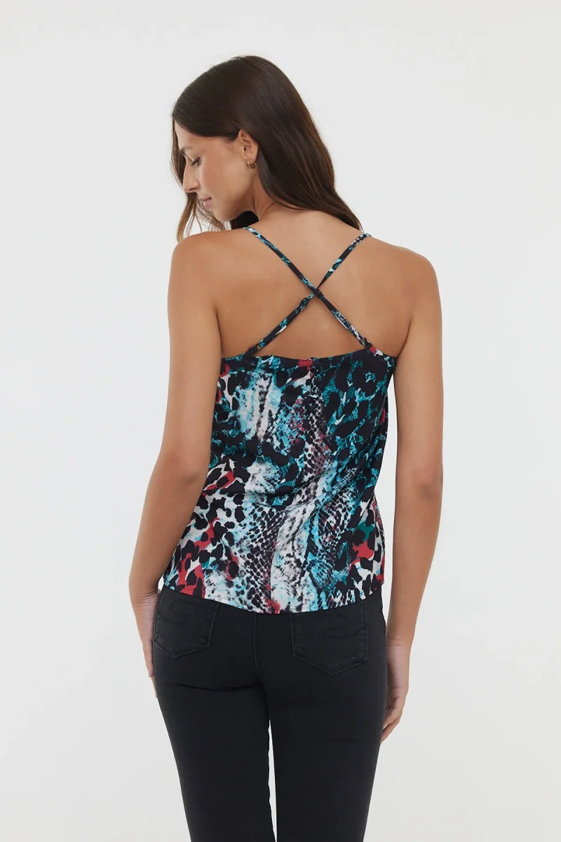 Débardeur avec imprimé « Animal » à bretelles réglables et col V avec dentelle