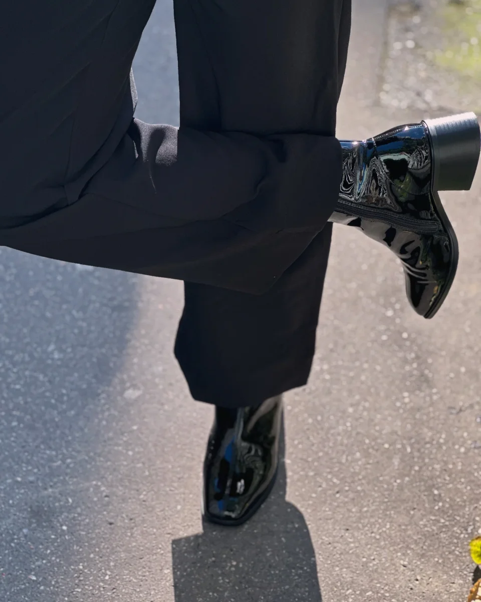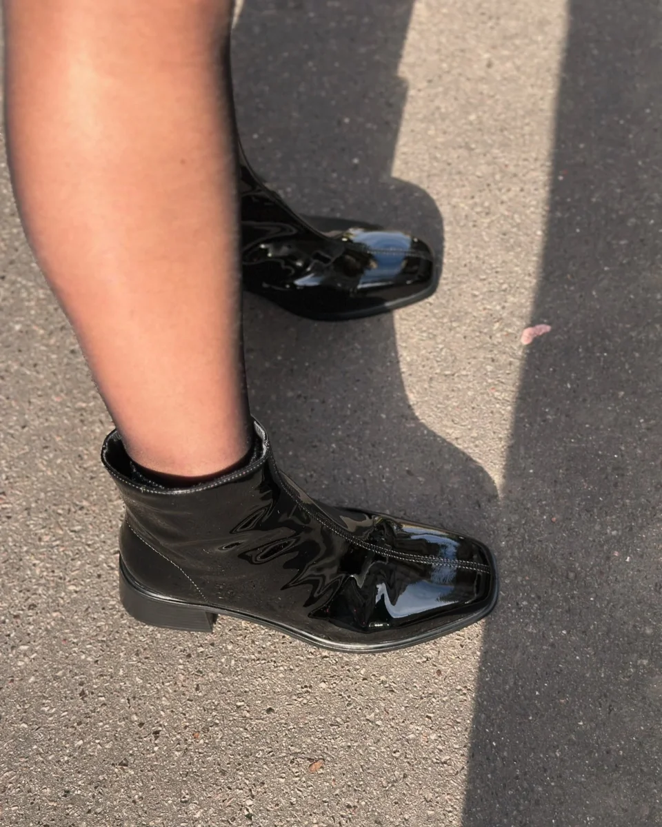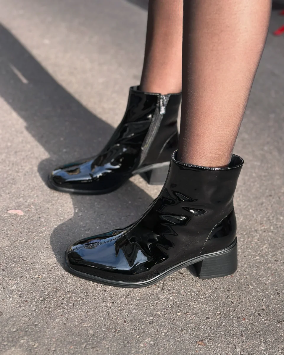 Bottines en cuir vernis à talons mi-hauteur Matière principale extérieure : 100% CUIR Doublure : TEXTILE Semelle intérieure : 100% CUIR Hauteur talon : 5 cm Système de fermeture à zip intérieur