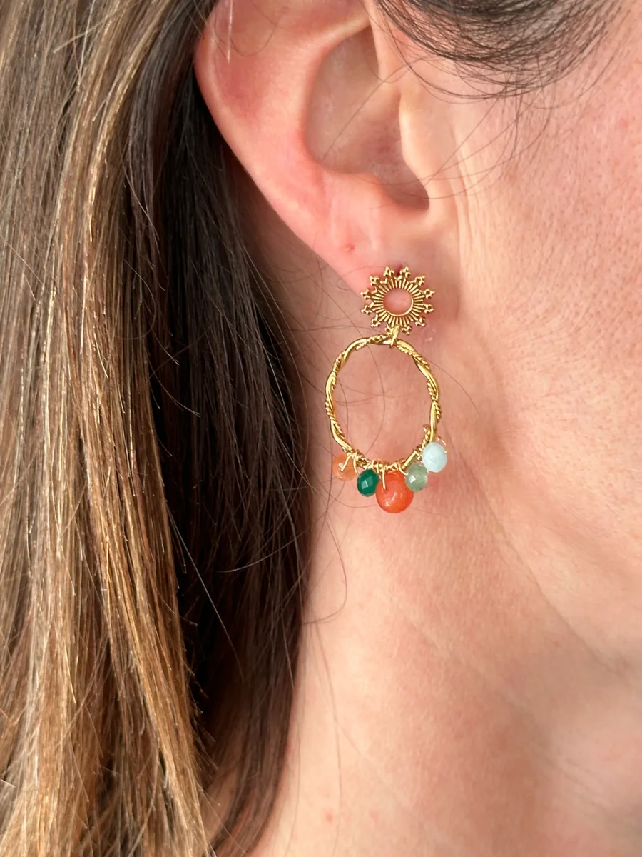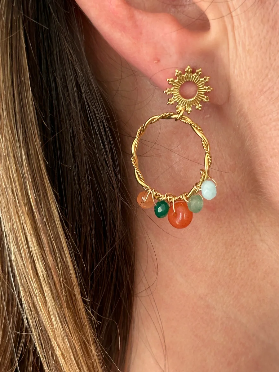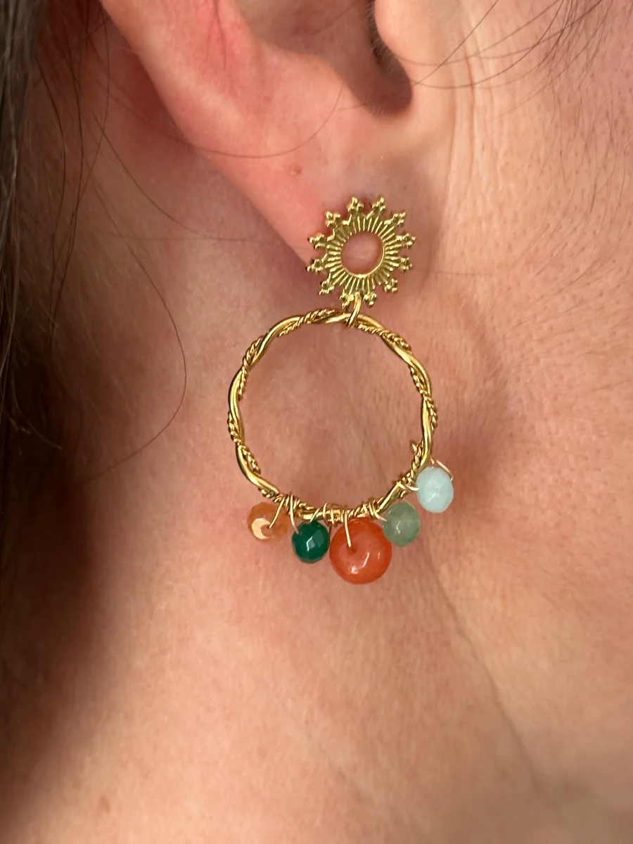 - Boucles en cercle torsadé, aux perles colorées.