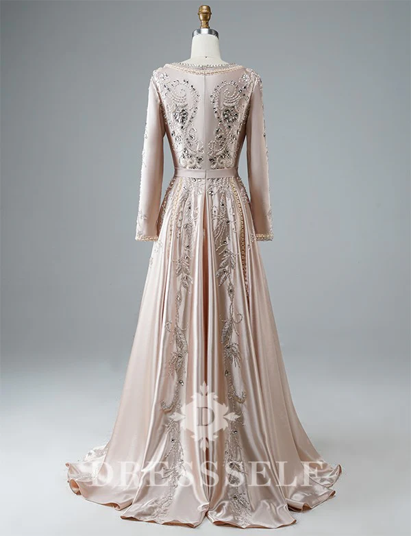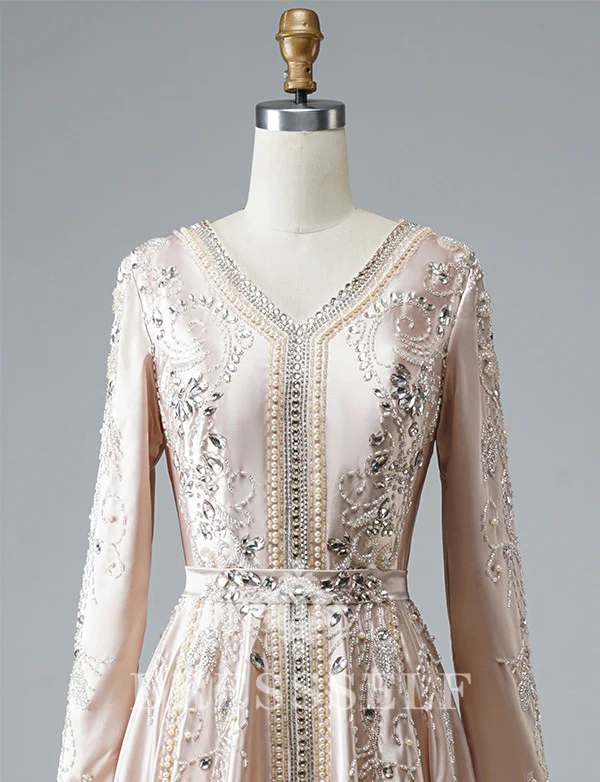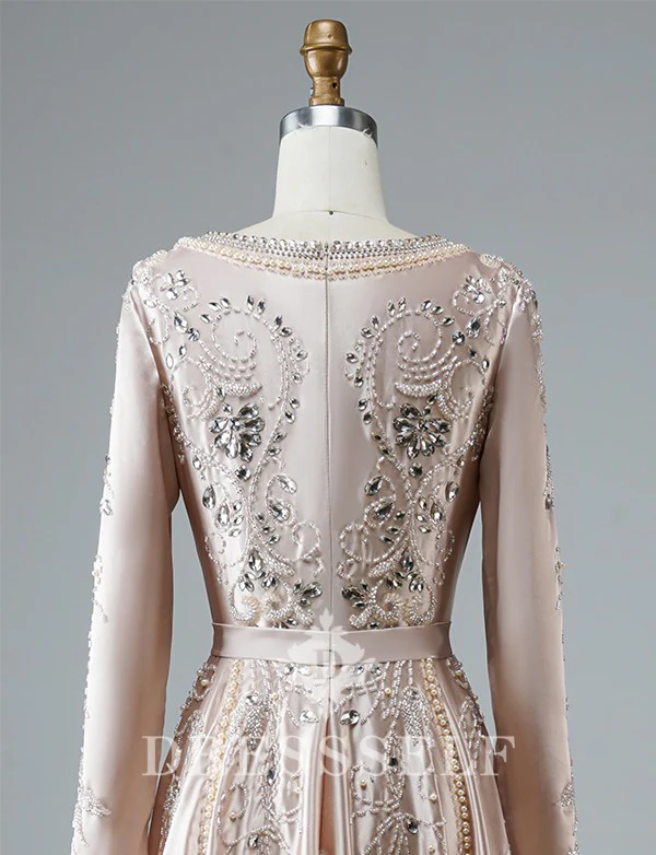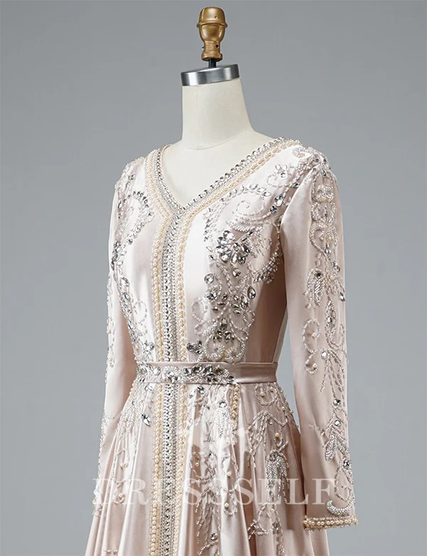 Description du produit Matériel: Satin Ornement: Broderie,Perlé Ceinture incluse: Oui Manches: Longues Si vous rencontrez le moindre problème, contactez-nous par mail : [email protected]