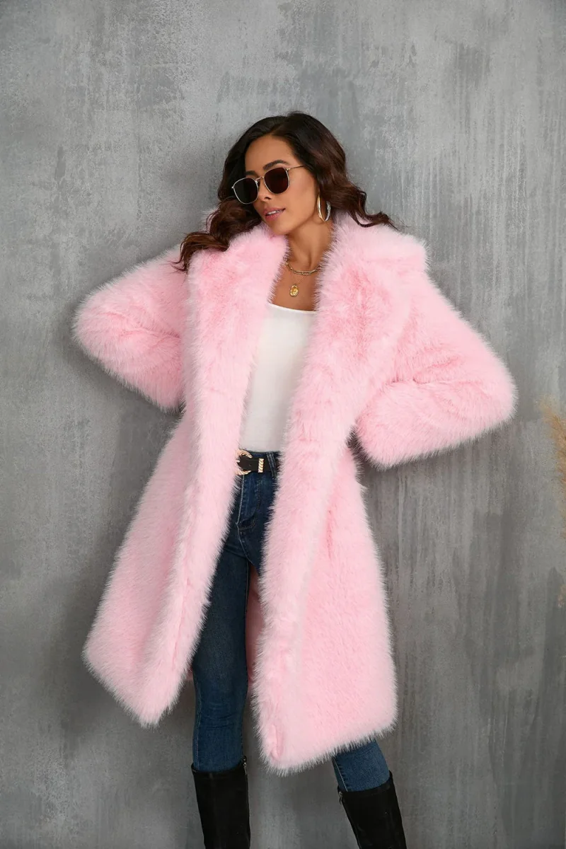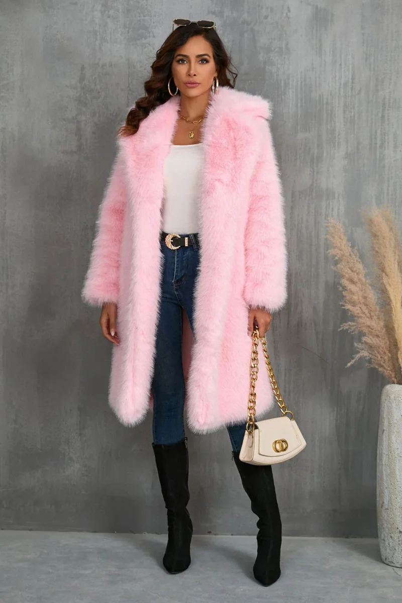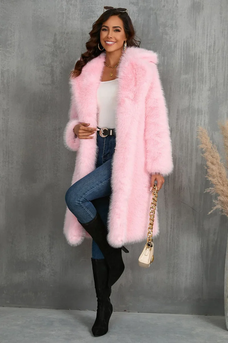 Café Ouvert Avant Fausse Fourrure Long Femmes Fluffy Coat
