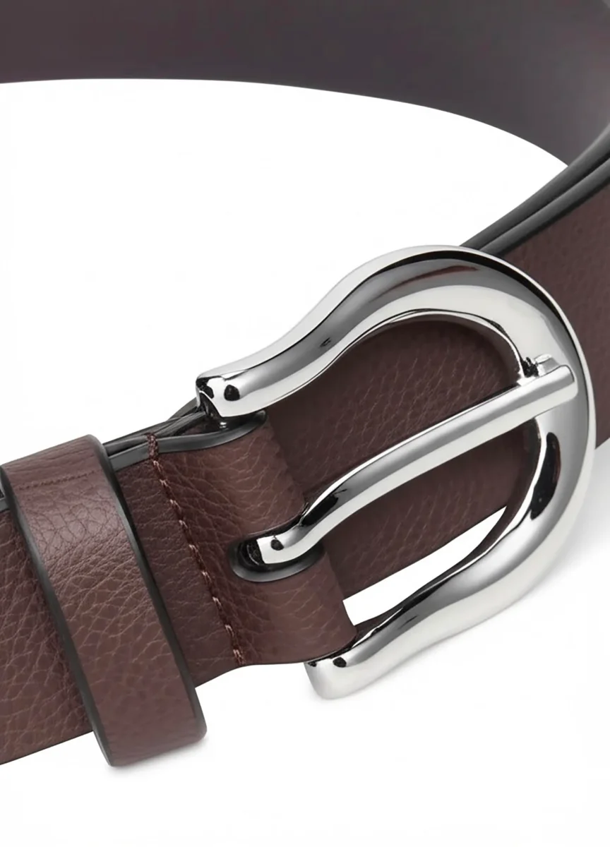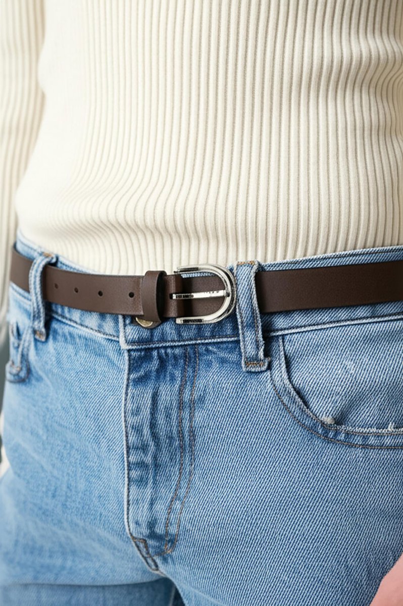 Cette ceinture en cuir lisse marron à boucle argentée incarne l’essence même du classique. Polyvalente et élégante, elle est parfaite pour compléter votre tenue, que vous portiez un jean décontracté ou une robe sophistiquée. Son design intemporel lui permet de s’adapter à une variété de styles et d’occasions.
