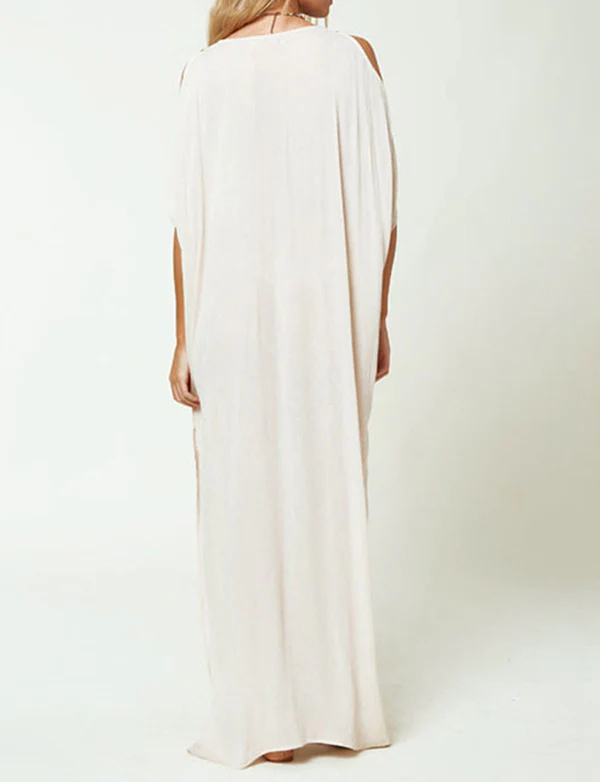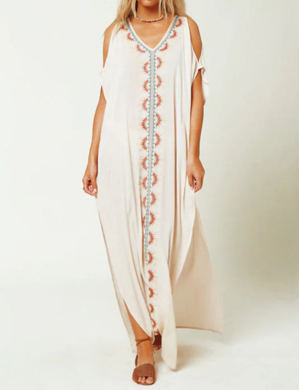 Caftan élégant brodé d’or rétro robe blanche à col en V
