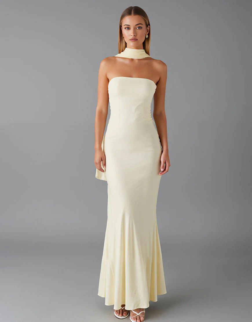 Daffodil Sirène Robe de soirée sans bretelles en mousseline de soie