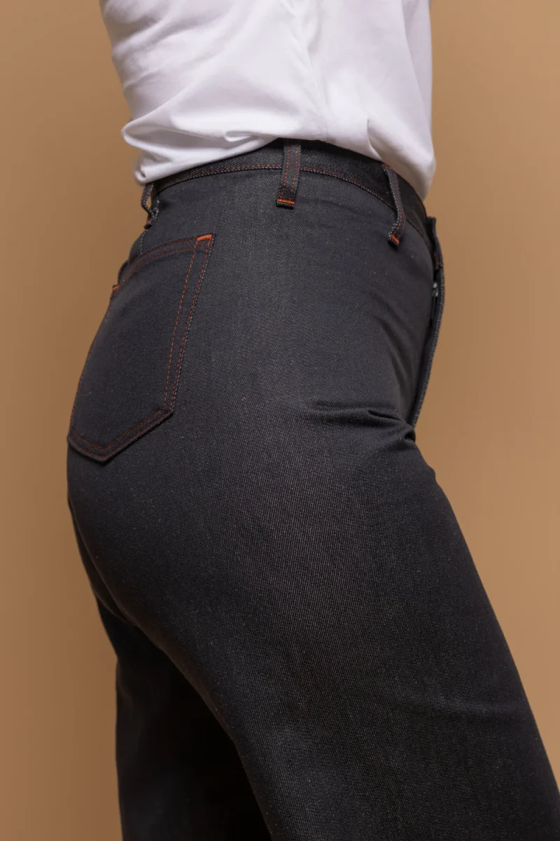 Le FLAVIA est un jeans femme, confortable et thermorégulateur. Fabriqué en France avec un tissu 62% coton bio 38% lin, non extensible.
