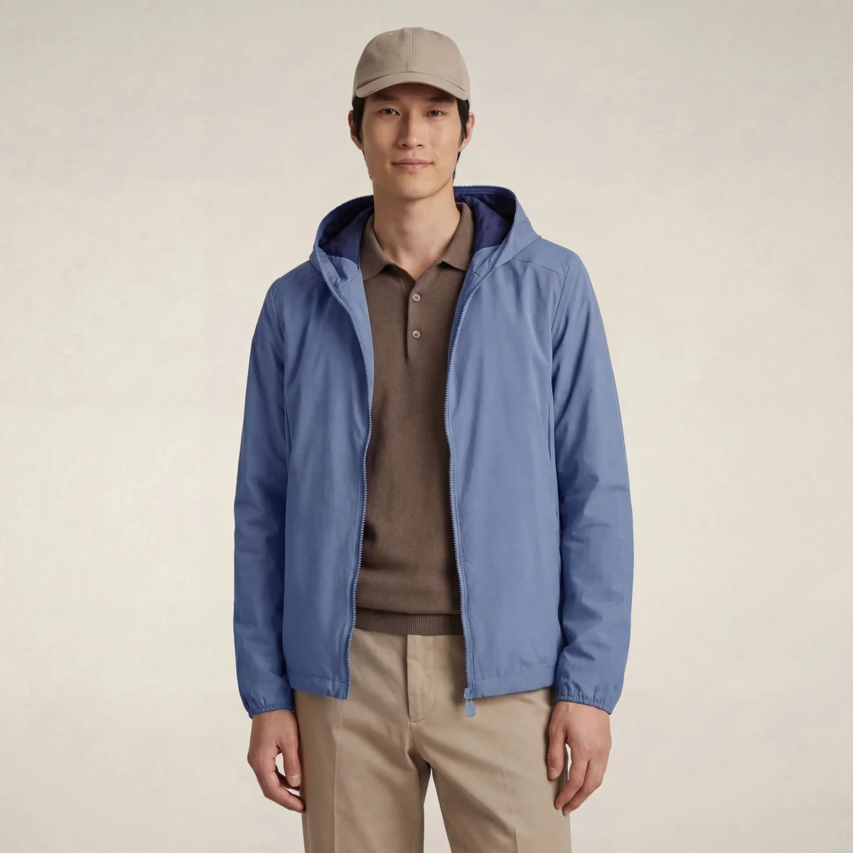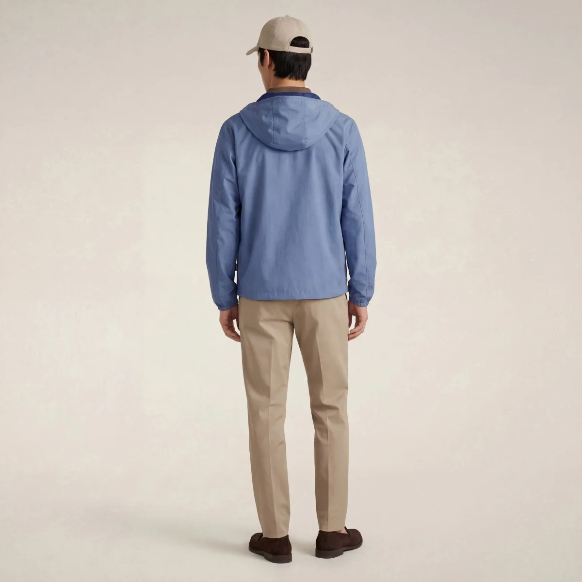 La giacca con cappuccio uomo Zayn presenta una zip centrale a doppio cursore, tasche basse zippate e cuciture parzialmente nastrate per maggiore protezione. La coulisse regolabile all’orlo offre comfort extra, mentre la lamina interna a contrasto aggiunge un tocco originale. Il logo tondo sulla manica sinistra e i tirazip personalizzati sono elementi chiave dello stile Save The Duck.