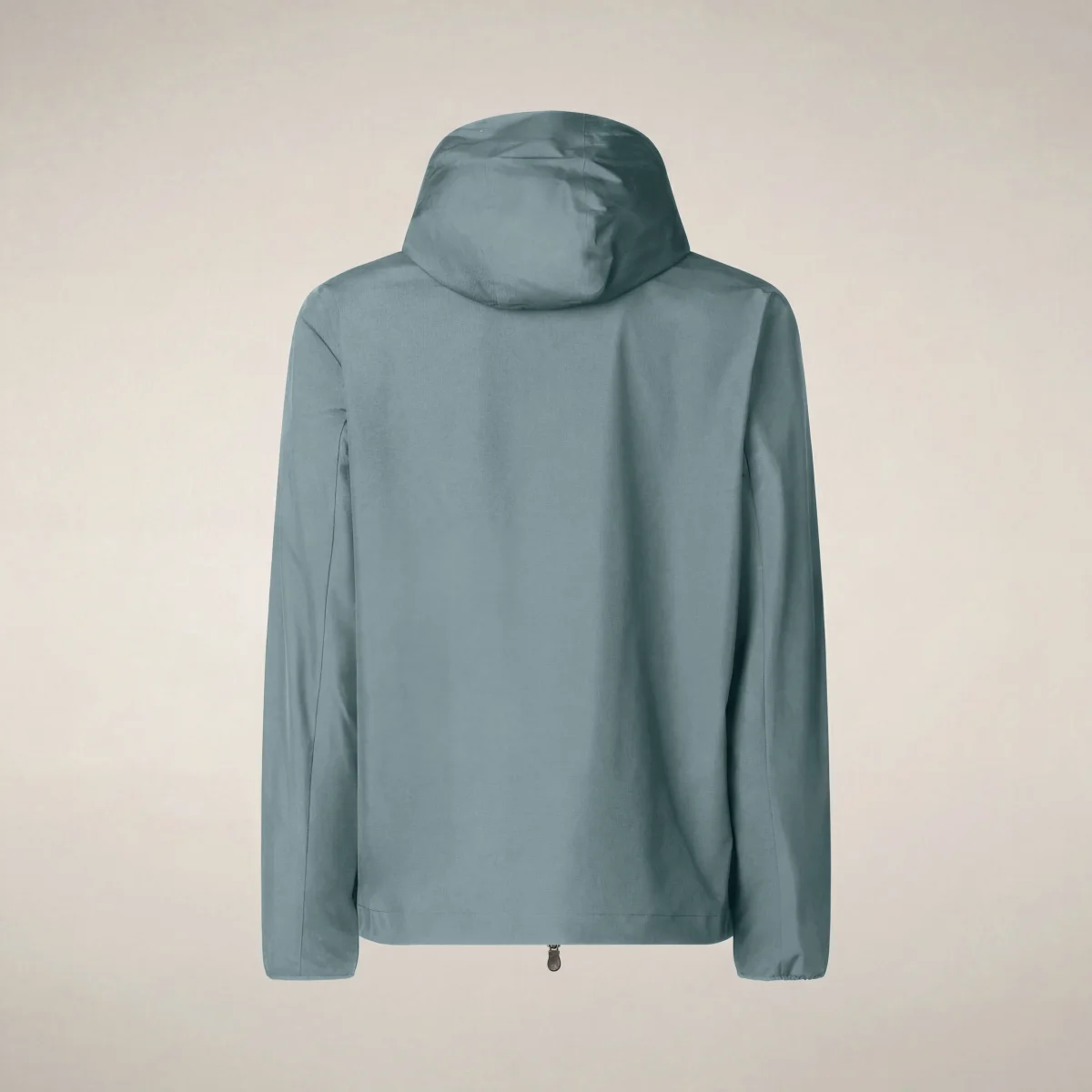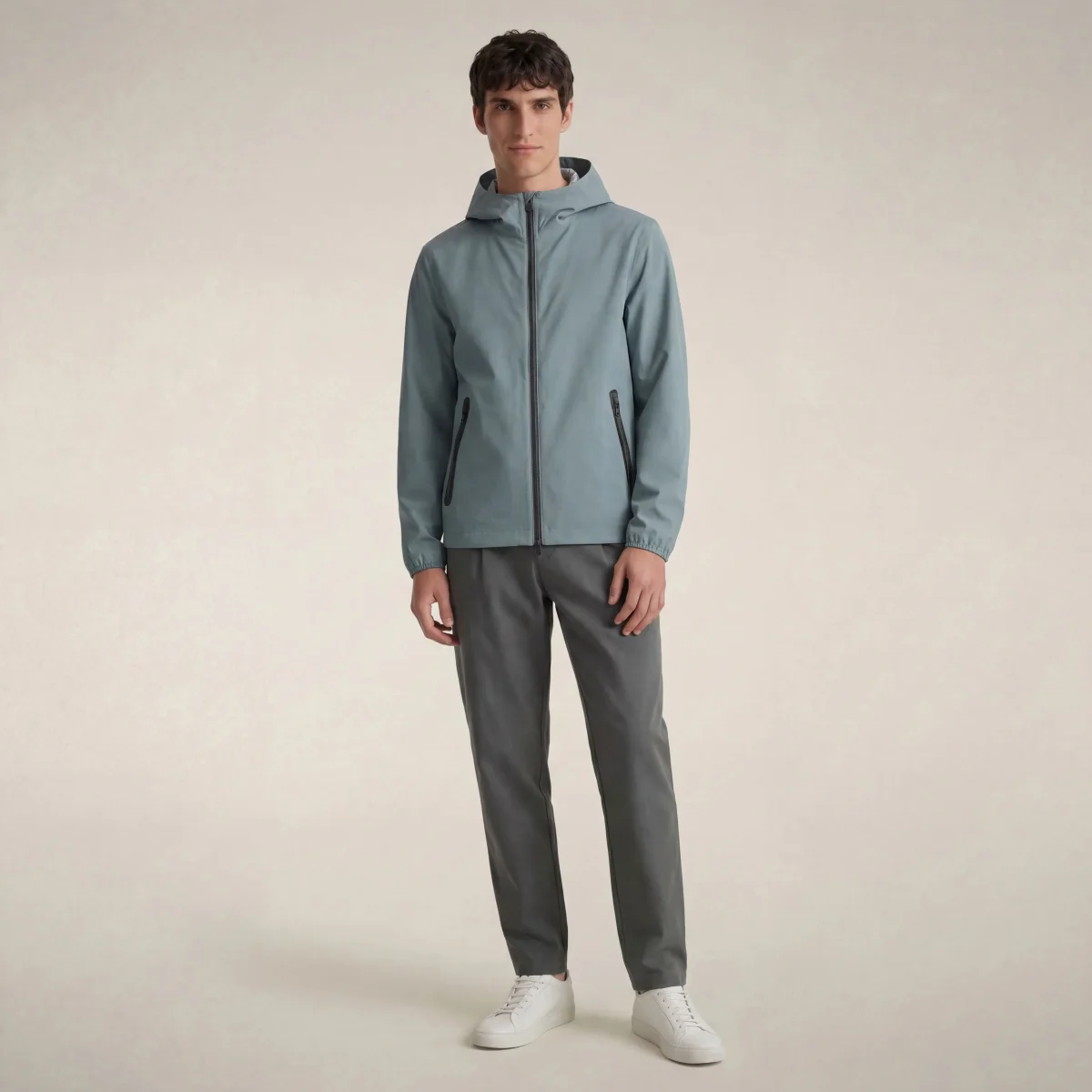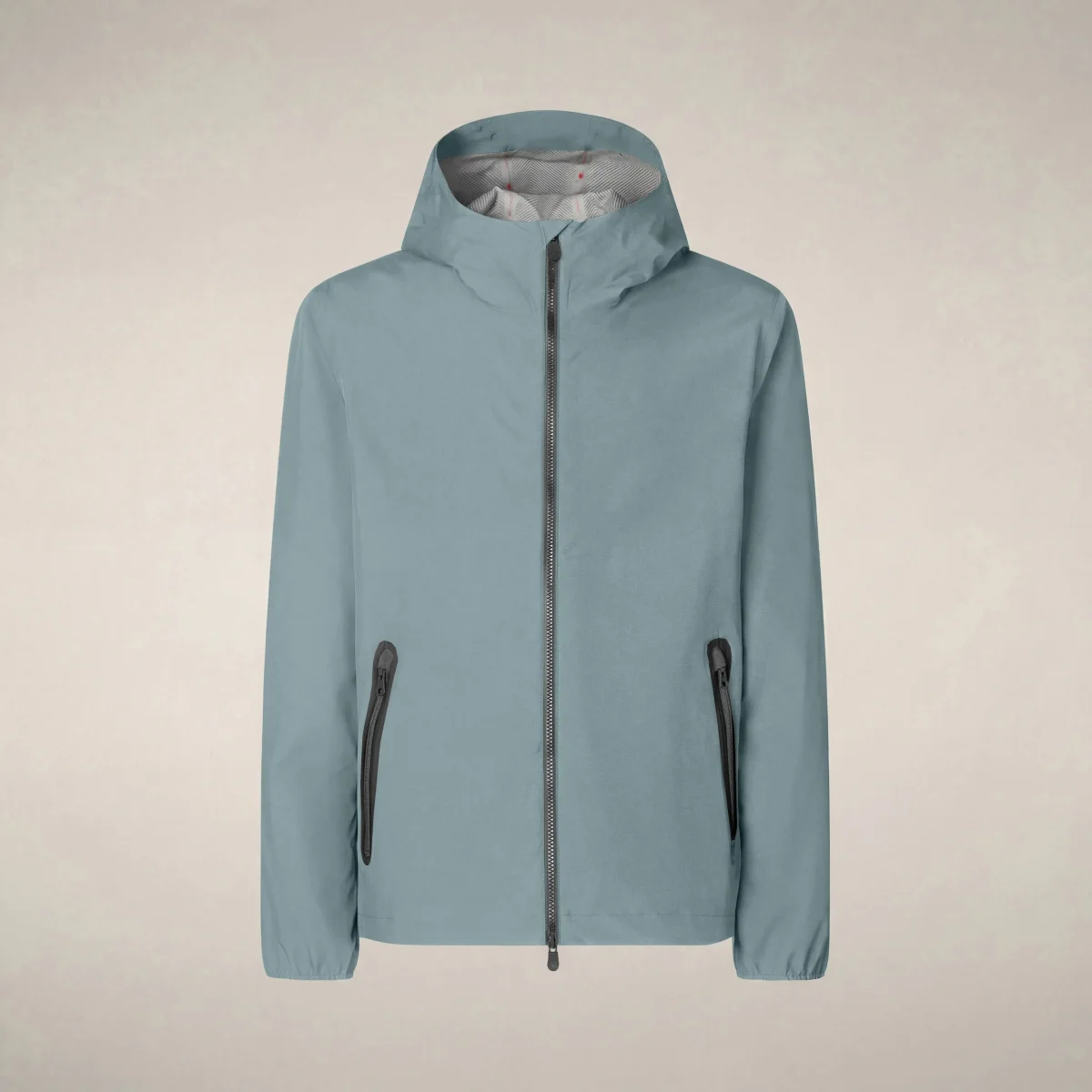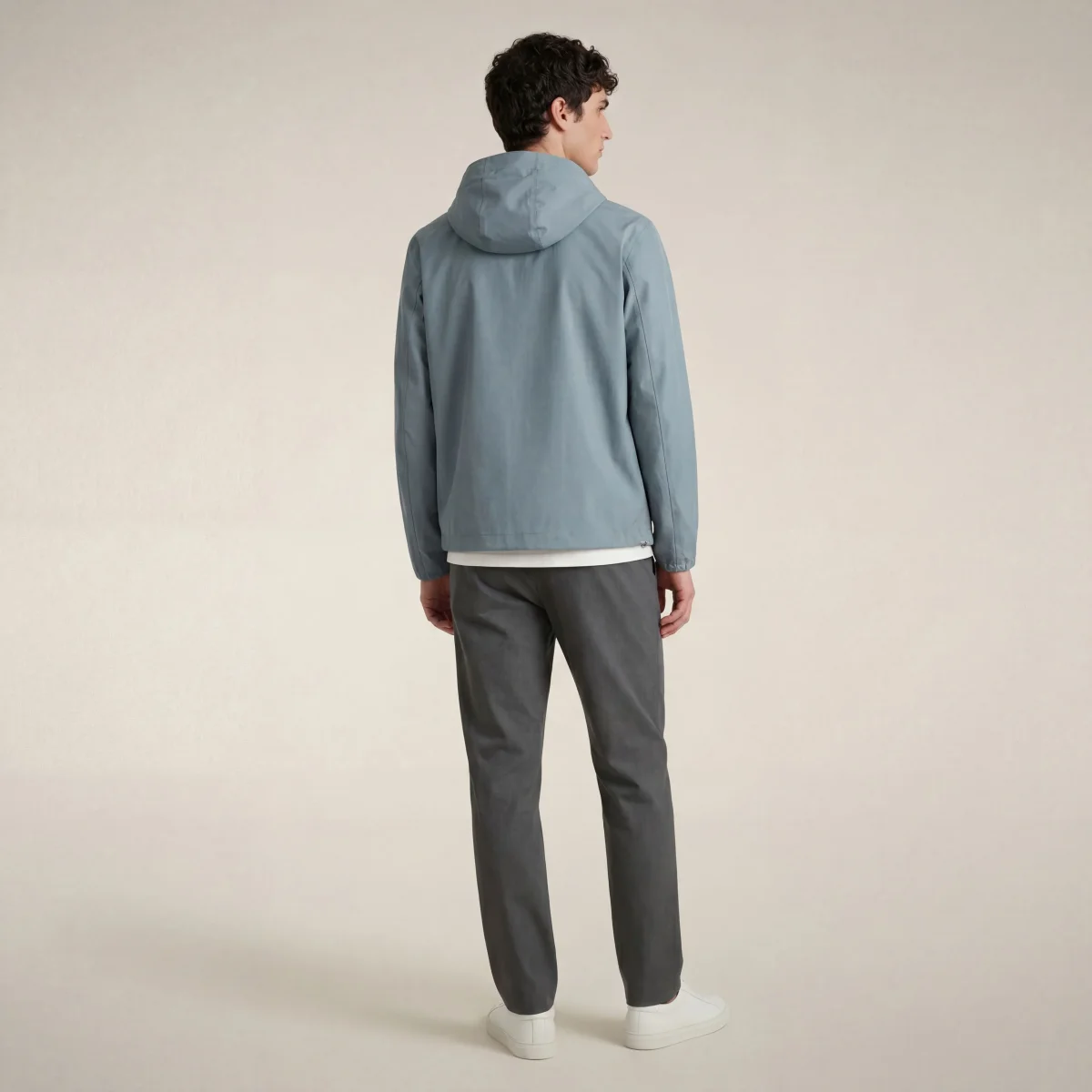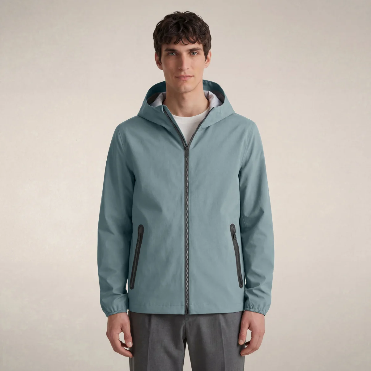 La giacca impermeabile uomo modello Drop è l’opzione ideale per affrontare pioggia e vento estivi con leggerezza e versatilità . Dotata di zip a doppio cursore e cuciture termonastrate su spalle, cappuccio e giromanica, offre tasche laterali waterproof. La scritta sulla nastratura, il logo tondo e il tirazip personalizzato completano il design con un dettaglio distintivo.