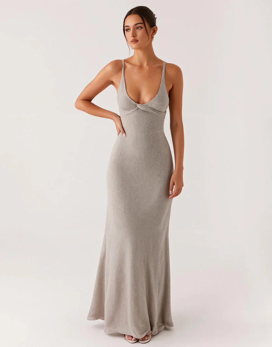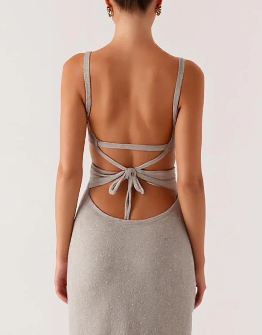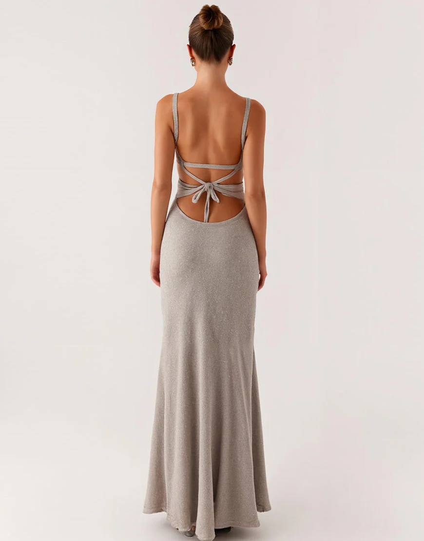 Gris bretelles spaghetti à lacets Dos Fourreau Robe formelle