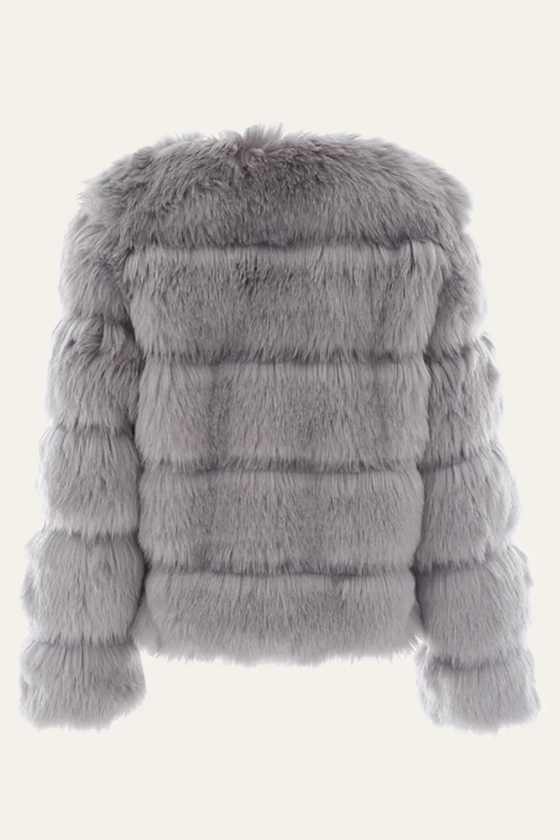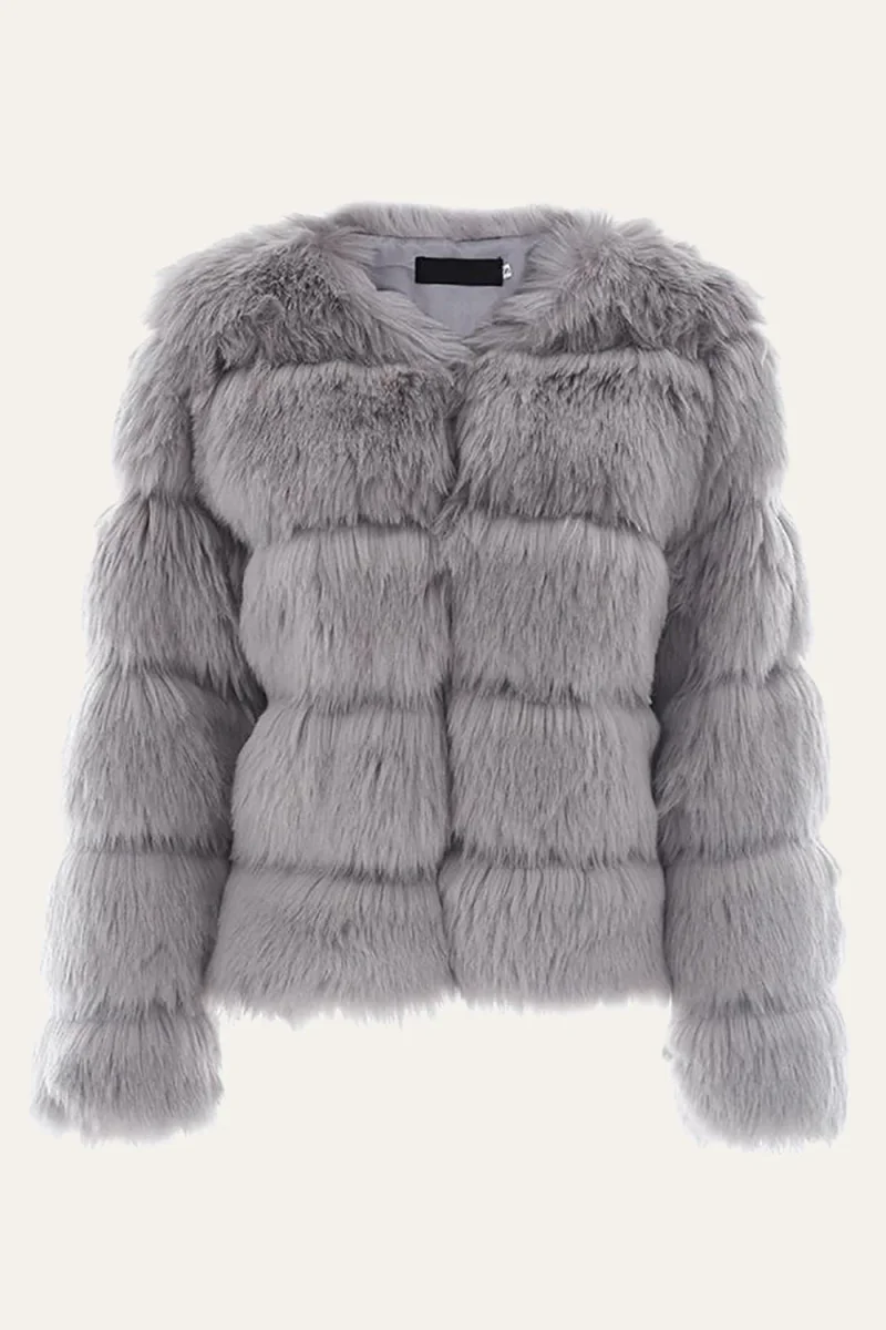 Gris Moelleux Cropeed Shawl Lapel Fausse Fourrure Shearling Manteau