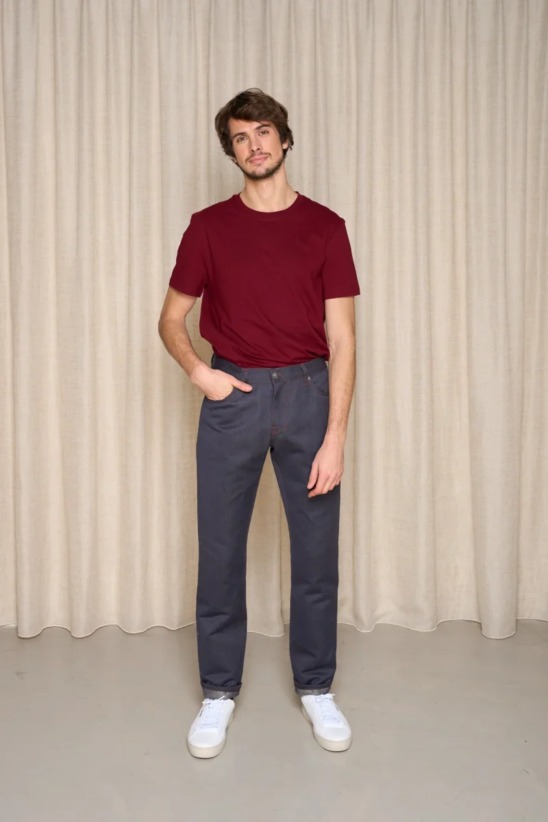 Le Isla est un jean pour homme, à la coupe droite composé de 50 % de chanvre chêne retors teint dans les Vosges par une entreprise labellisée (label de la fabrication vosgienne) et de 50% de coton bio certifié GOTS pour respecter l’histoire légendaire du Selvedge original.