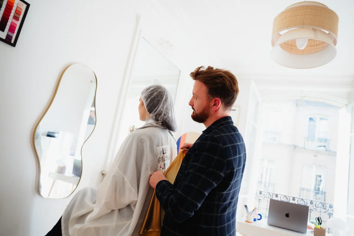 - Dans un second rendez-vous, nous vous aurons préparés vos tenues au showroom pour un essayage unique dans une bulle de confort.