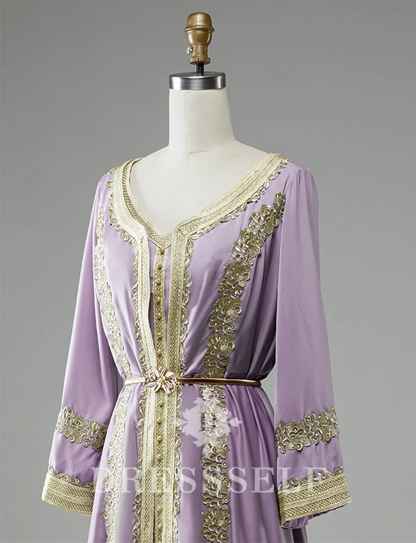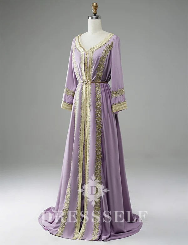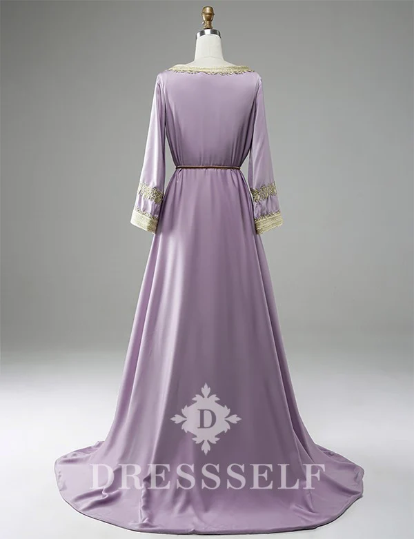 Description du produit Matériel: Satin Ornement: Broderie,Perlé Ceinture incluse: Non Manches: Longues Si vous rencontrez le moindre problème, contactez-nous par mail : [email protected]