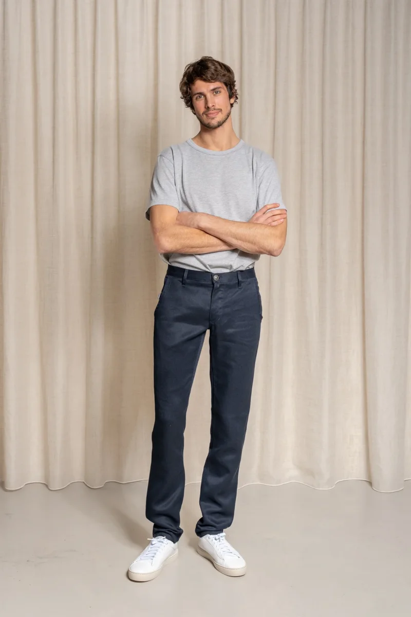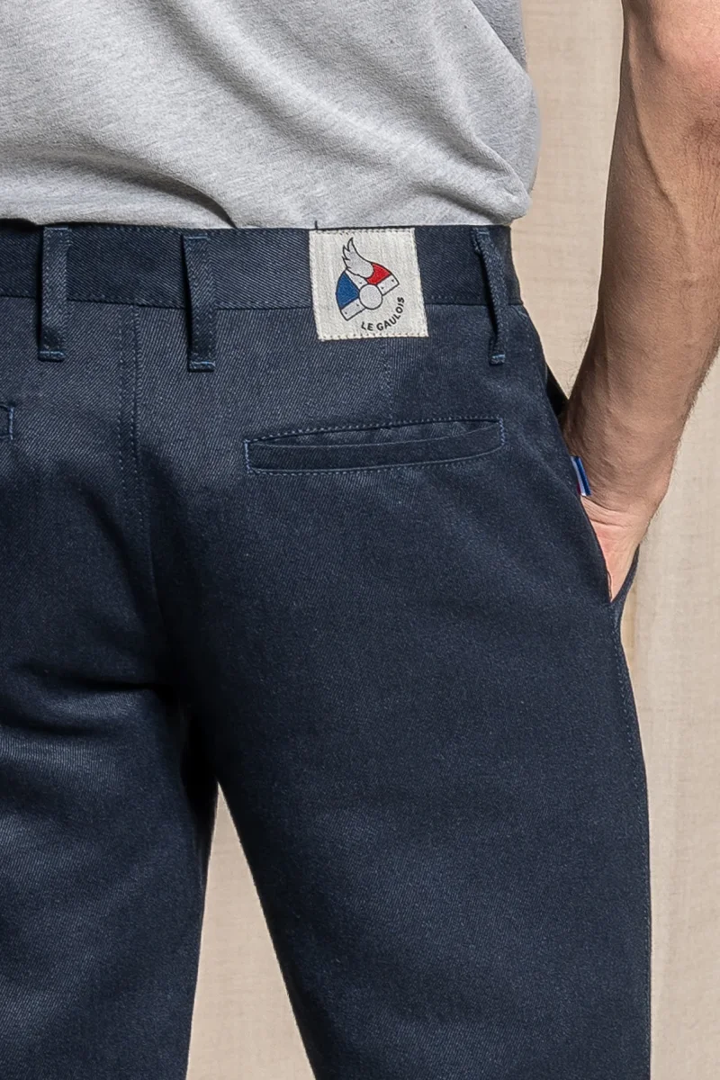 Inspiré du fameux chino, le Lugdunum est confortable aux hanches, avec une taille haute couvrant bien le bas du dos, et rétrécit en bas, il s’adapte facilement à toutes les morphologies et se marie avec tous les styles, du plus élégant au plus décontracté.
