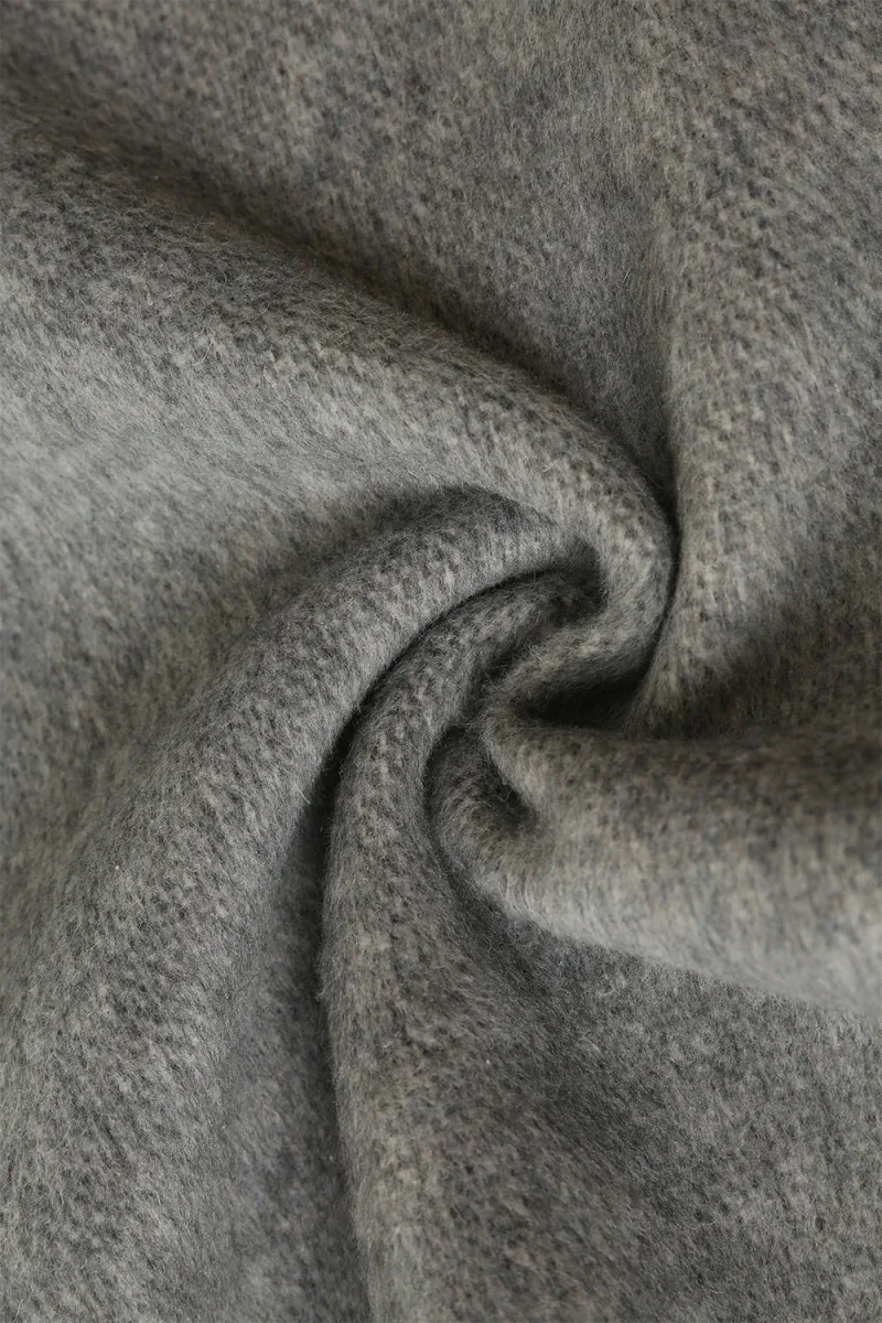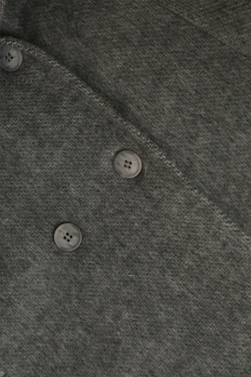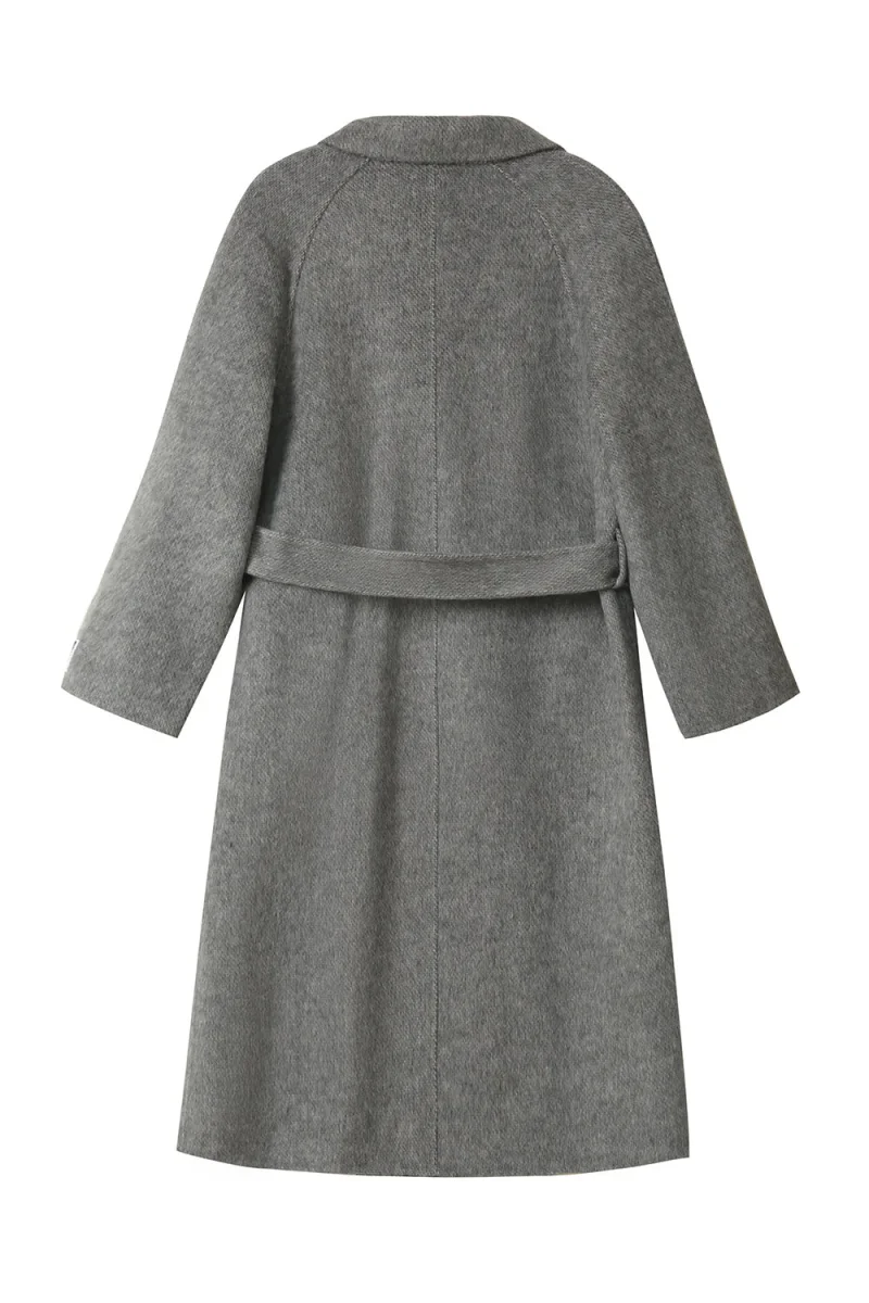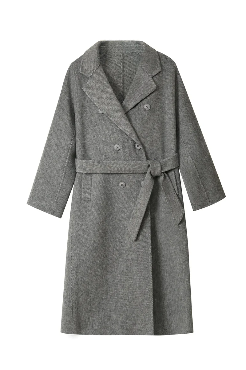 Manteau long croisé gris en laine mélangée avec ceinture