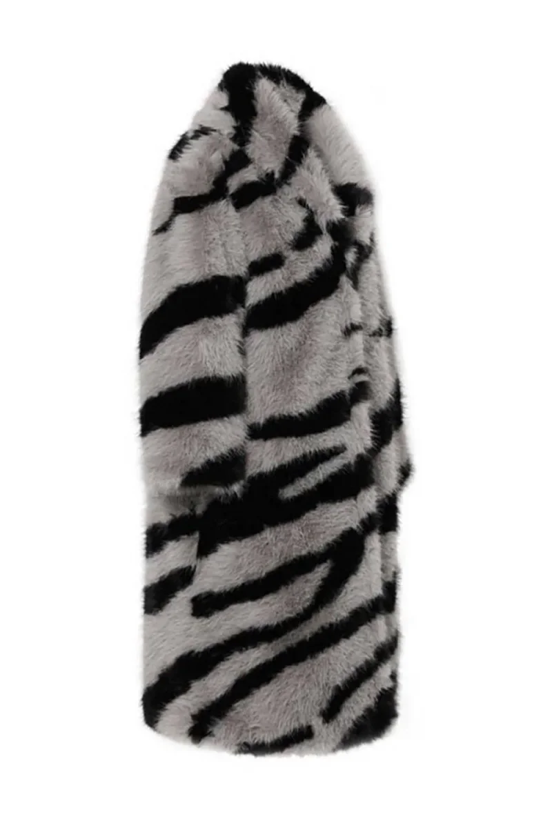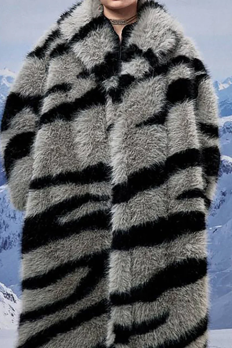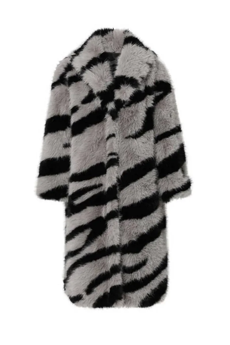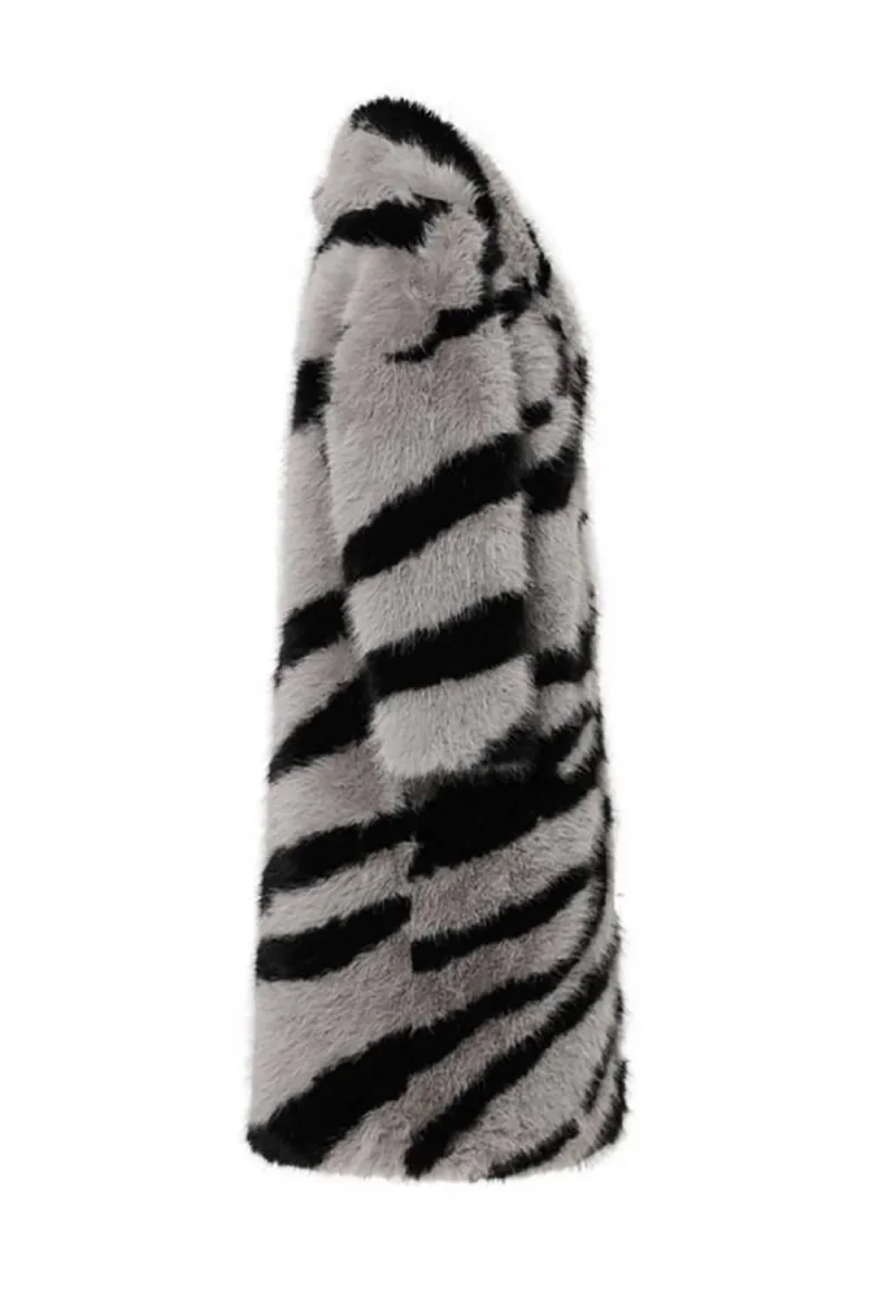 Motif zèbre gris foncé imitation manteau en shearling longue fausse fourrure surdimensionnée