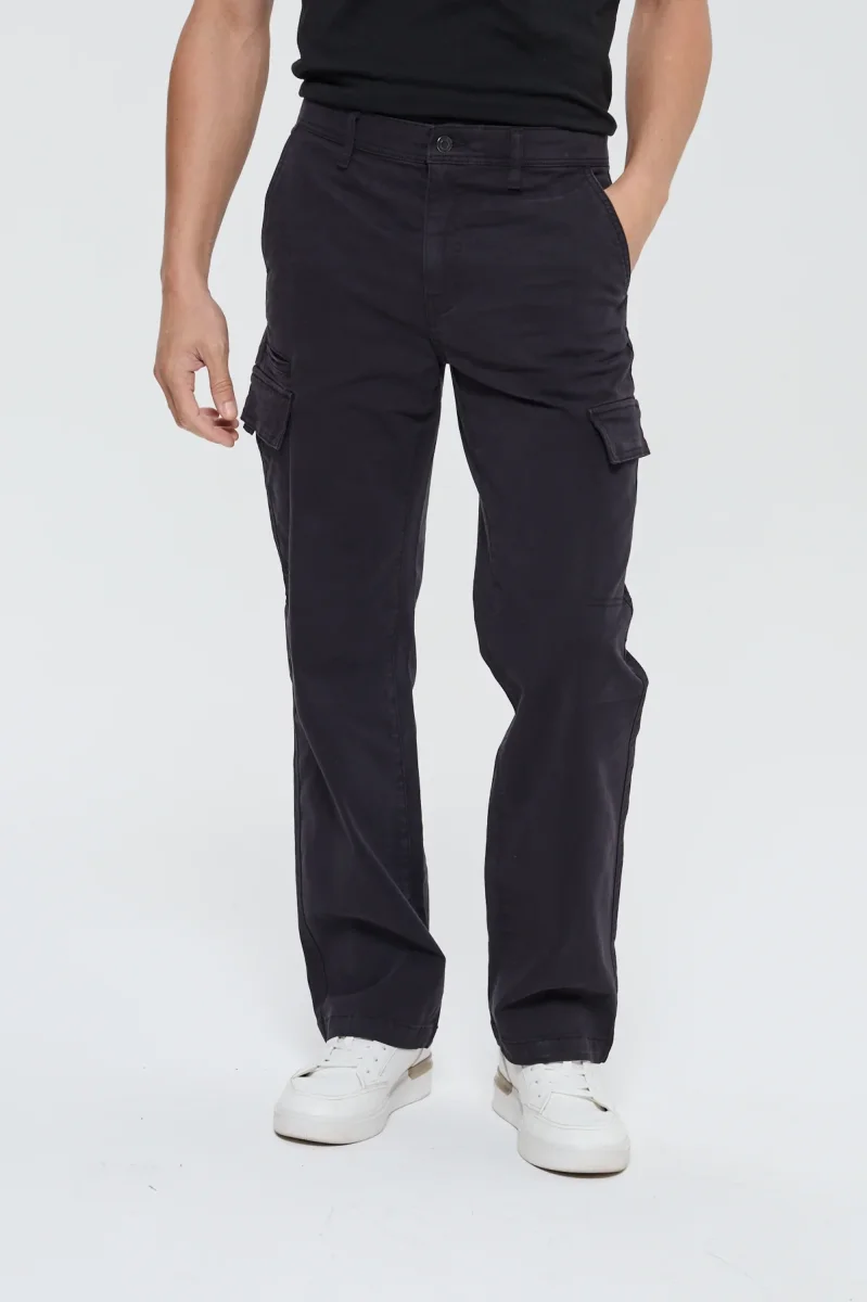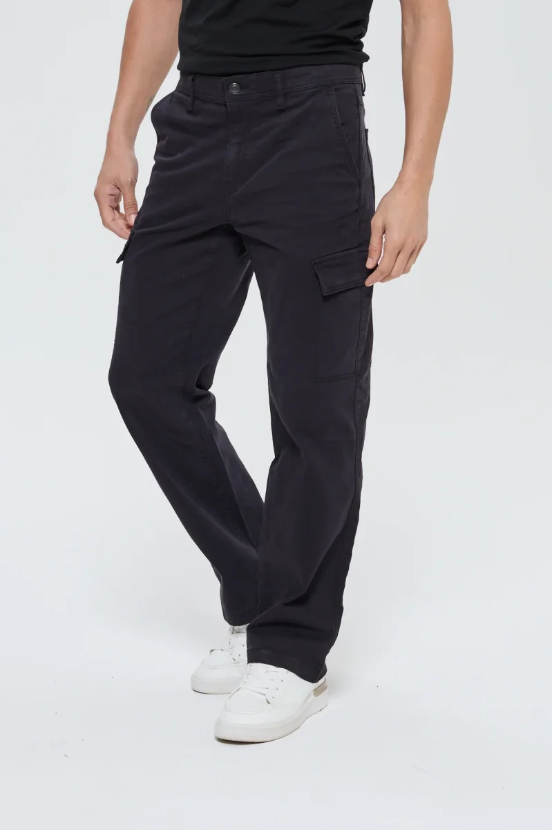 Pantalon cargo homme conçu en toile de coton majoritaire avec une touche de spandex pour plus de flexibilité et de confort.