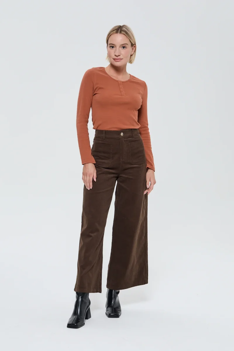 Sa matière 100% coton assure respirabilité et confort tout au long de la journée. Le marron profond réchauffe la silhouette et donne du caractère à vos tenues.