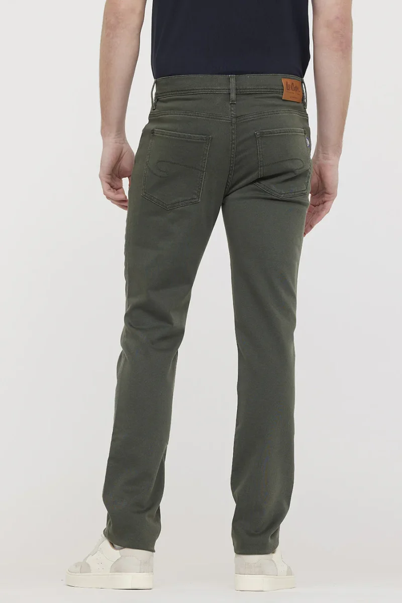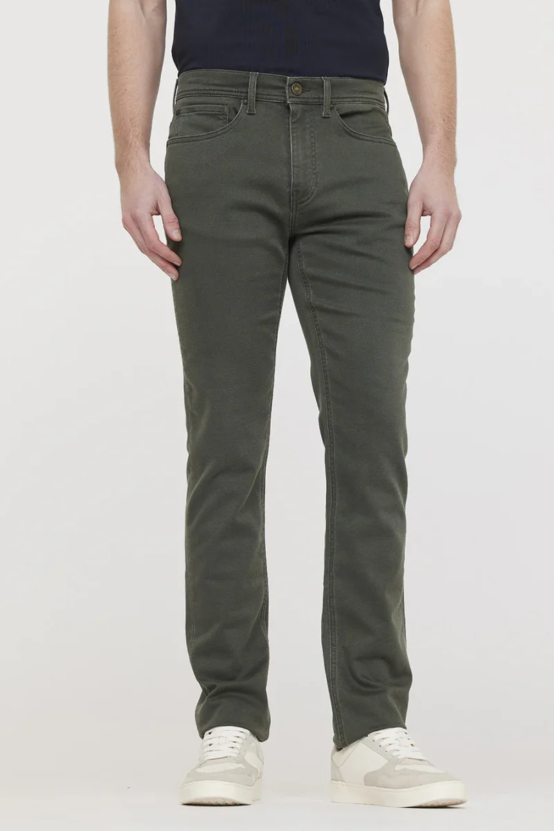 Pantalon coupe straight, taille medium, jambe légèrement ajustée. Le mannequin mesure 1m85 et porte la taille 31