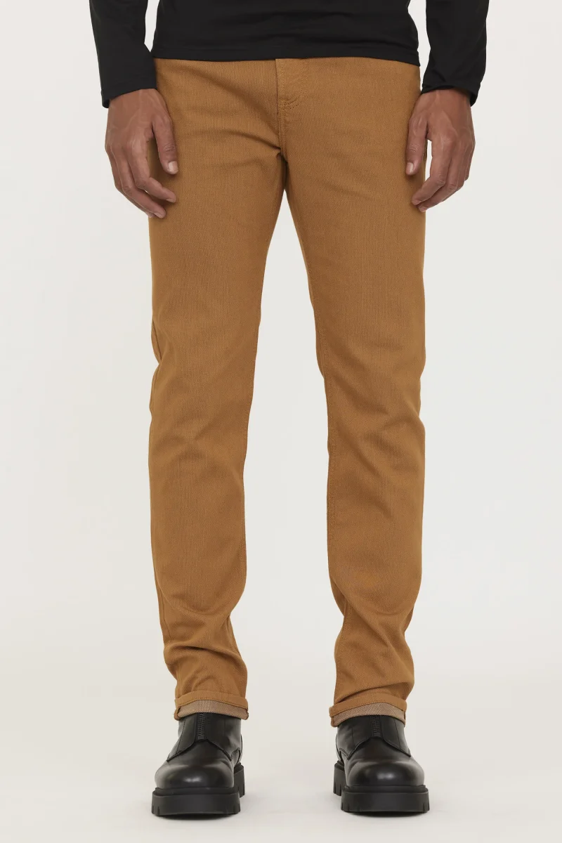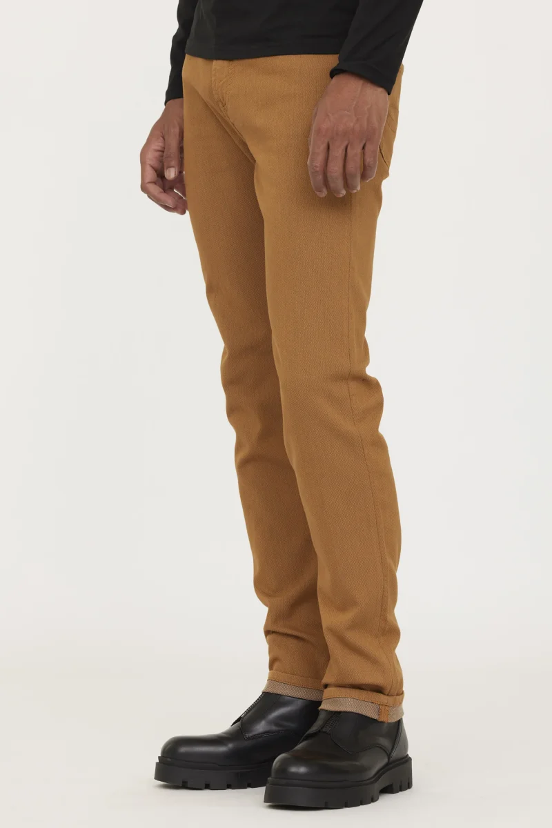 pantalon 5 poches coupe straight taille haute fermeture zipée en armure piqué Le mannequin mesure 1.85 cm et porte la taille 31