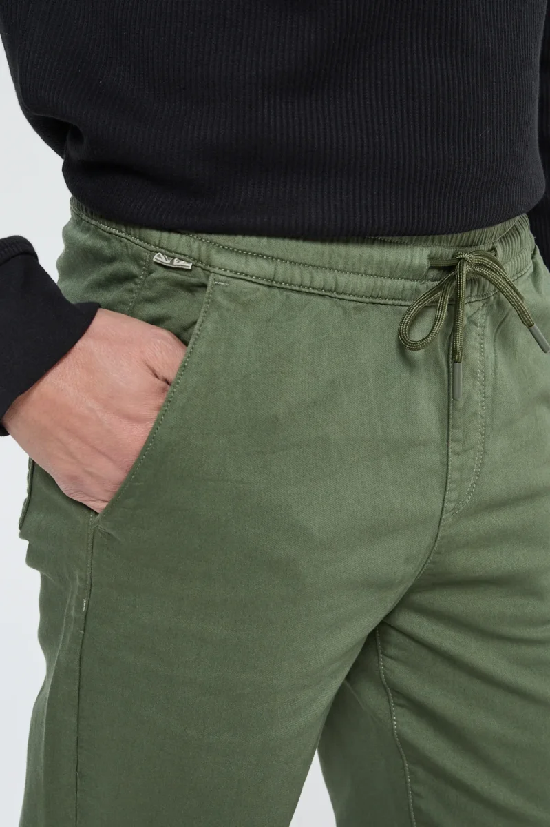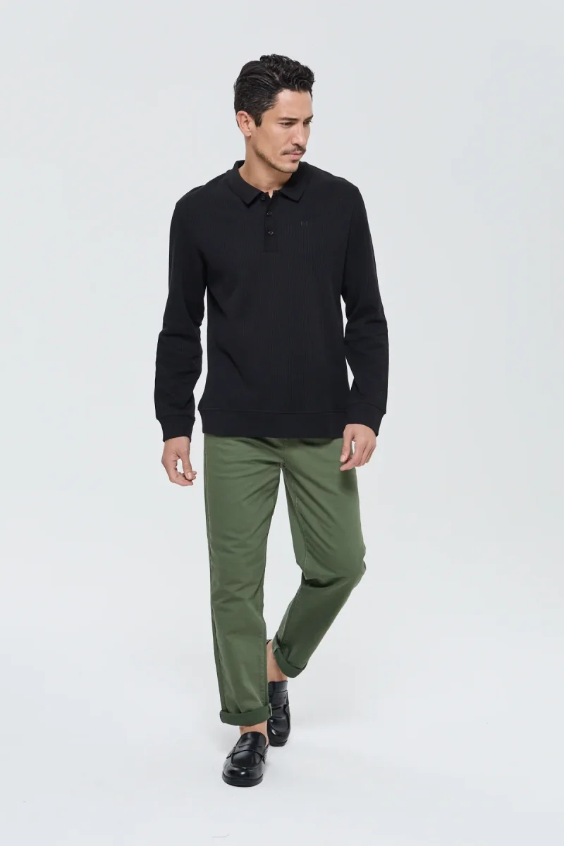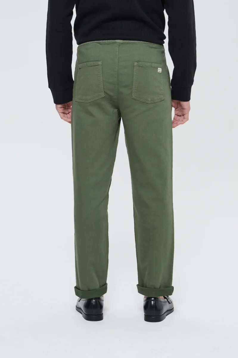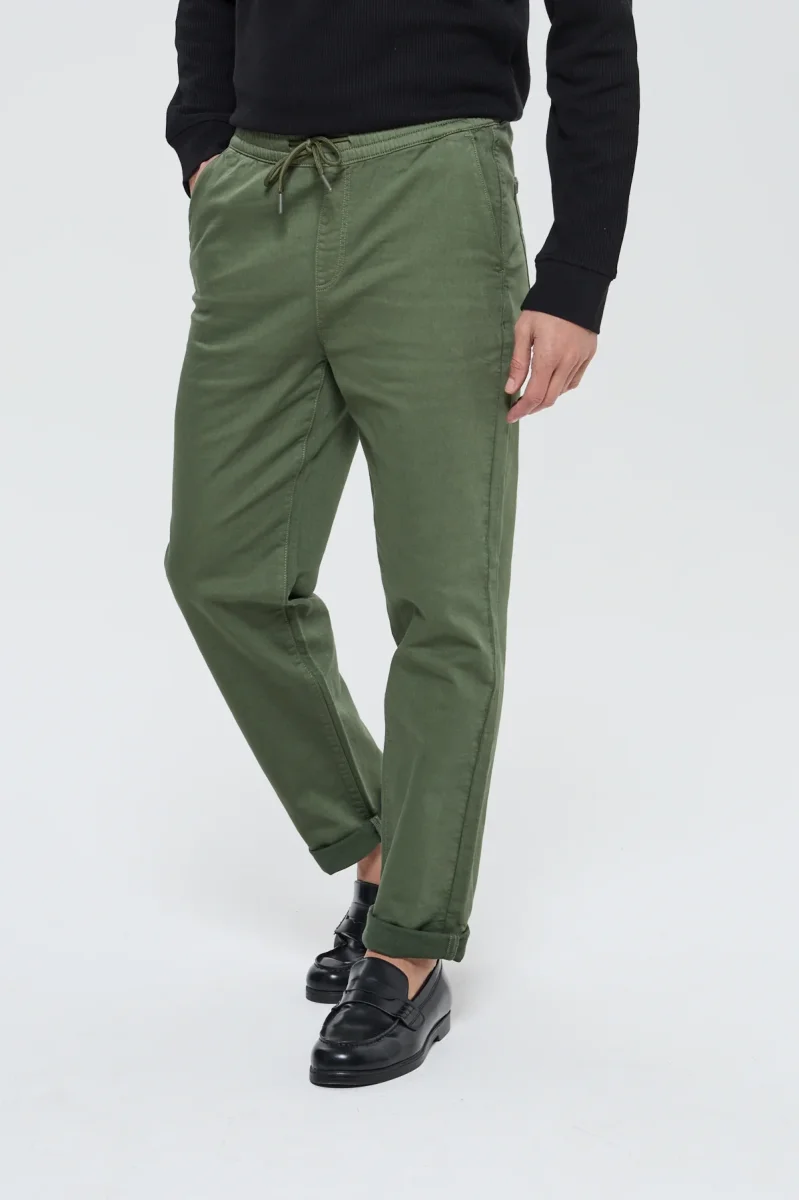 Pantalon homme à la coupe relaxe confectionné dans un mélange de coton doux et d’élasthanne, il offre une liberté de mouvement optimale tout en conservant une belle tenue tout au long de la journée.