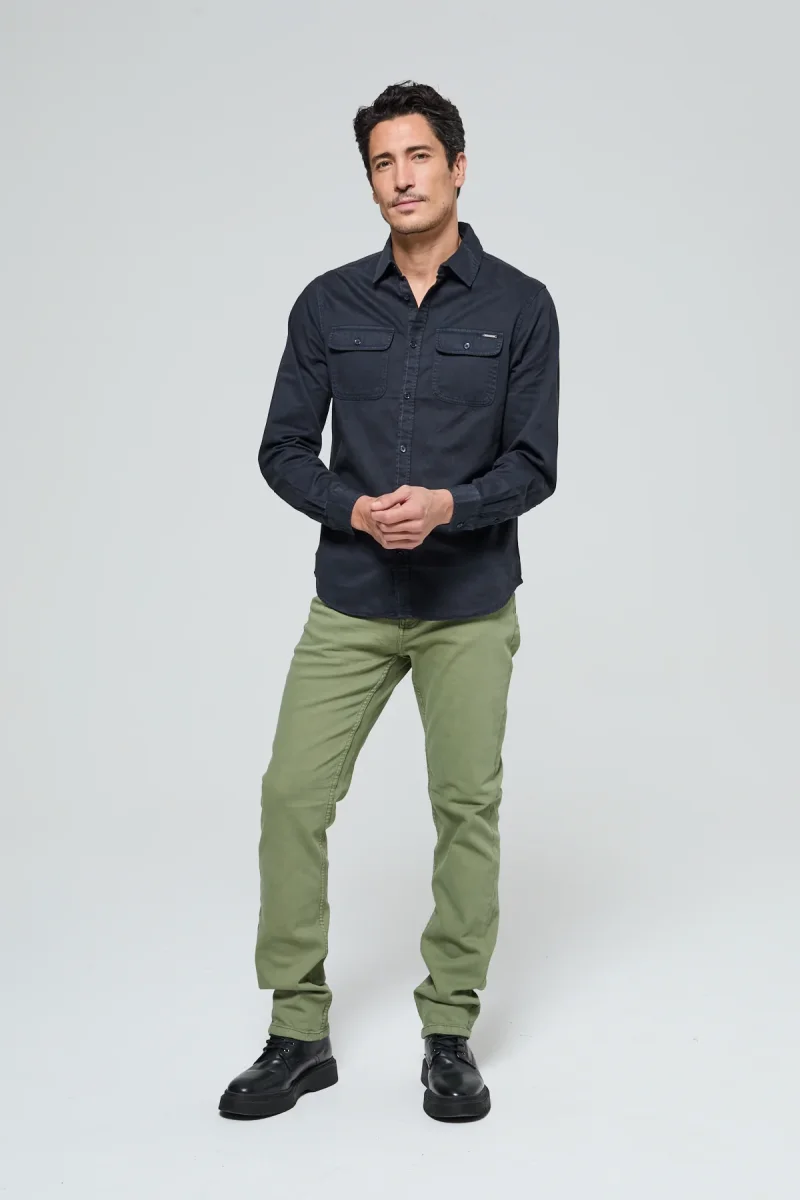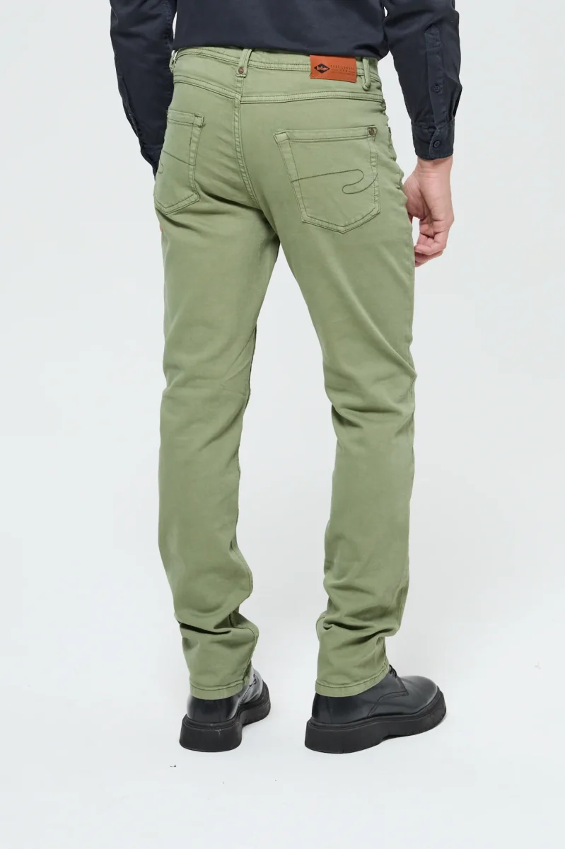 Pantalon coupe straight en coton et elasthanne, avec des jambes légèrement ajustées pour un confort optimal. Confectionné dans un tissu stretch, ce pantalon offre une grande liberté de mouvement. Longueur 34 Le mannequin mesure 1m85 et porte la taille 31