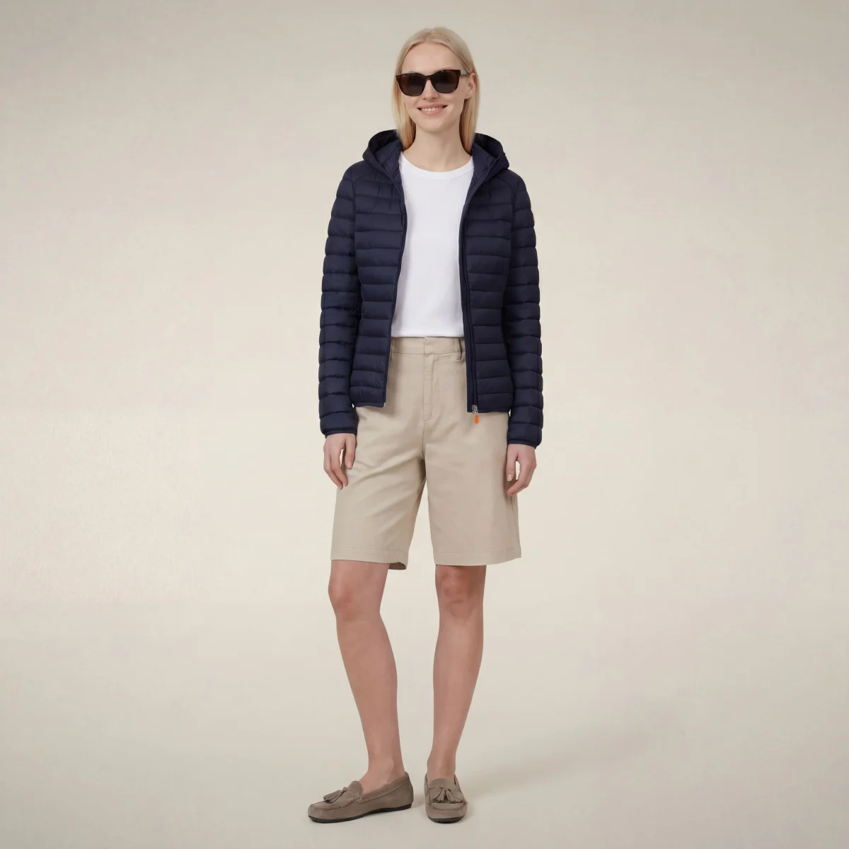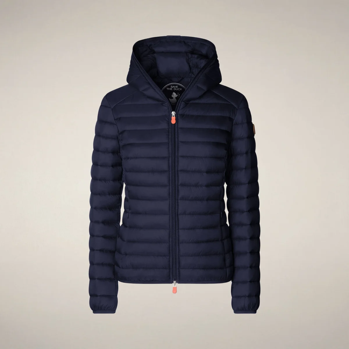 Bestseller dello stile Save The Duck, il piumino donna modello Daisy unisce il leggero design in nylon con la morbida imbottitura in PLUMTECH®. Completo di cappuccio, chiusura a doppio cursore e tasche laterali con zip nascoste, è rifinito da polsi e fondo elasticizzati. Il capo si distingue per il tirazip personalizzato e il logo tondo sulla manica sinistra arancioni. Tutto il comfort di un piumino 100 grammi, in una versione 100% animal-free.