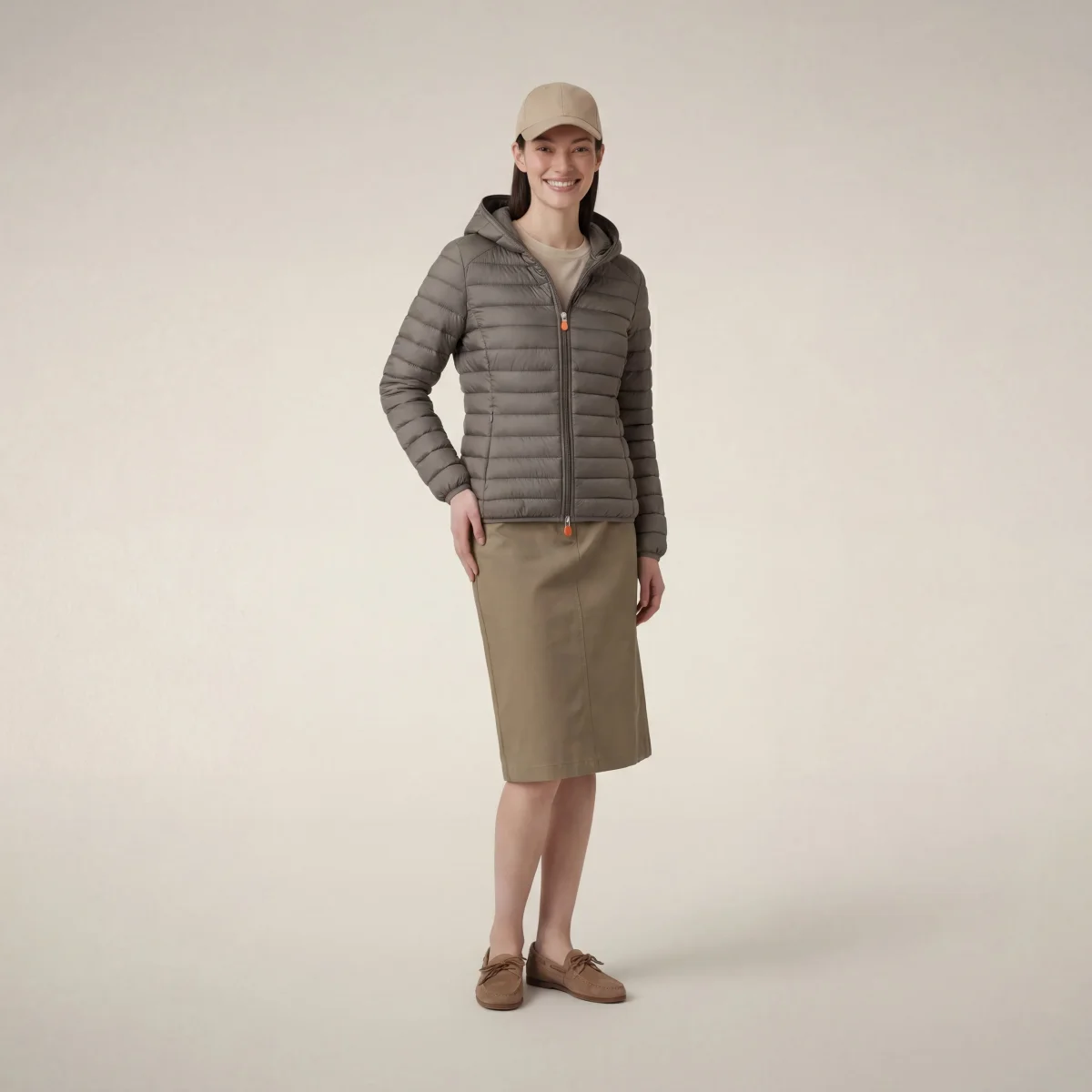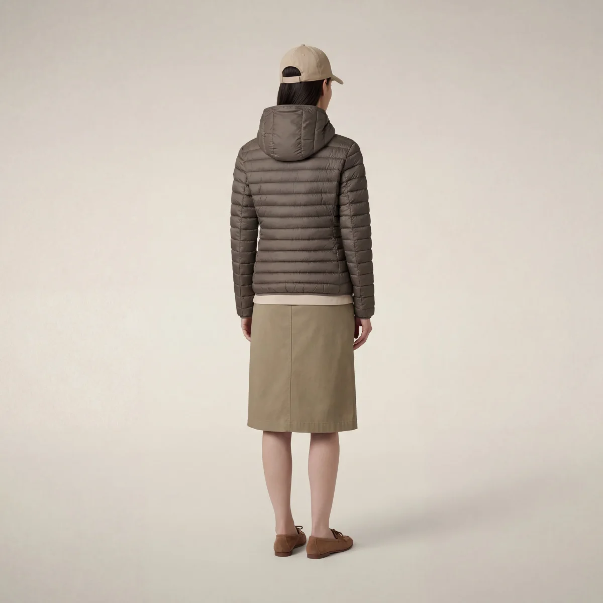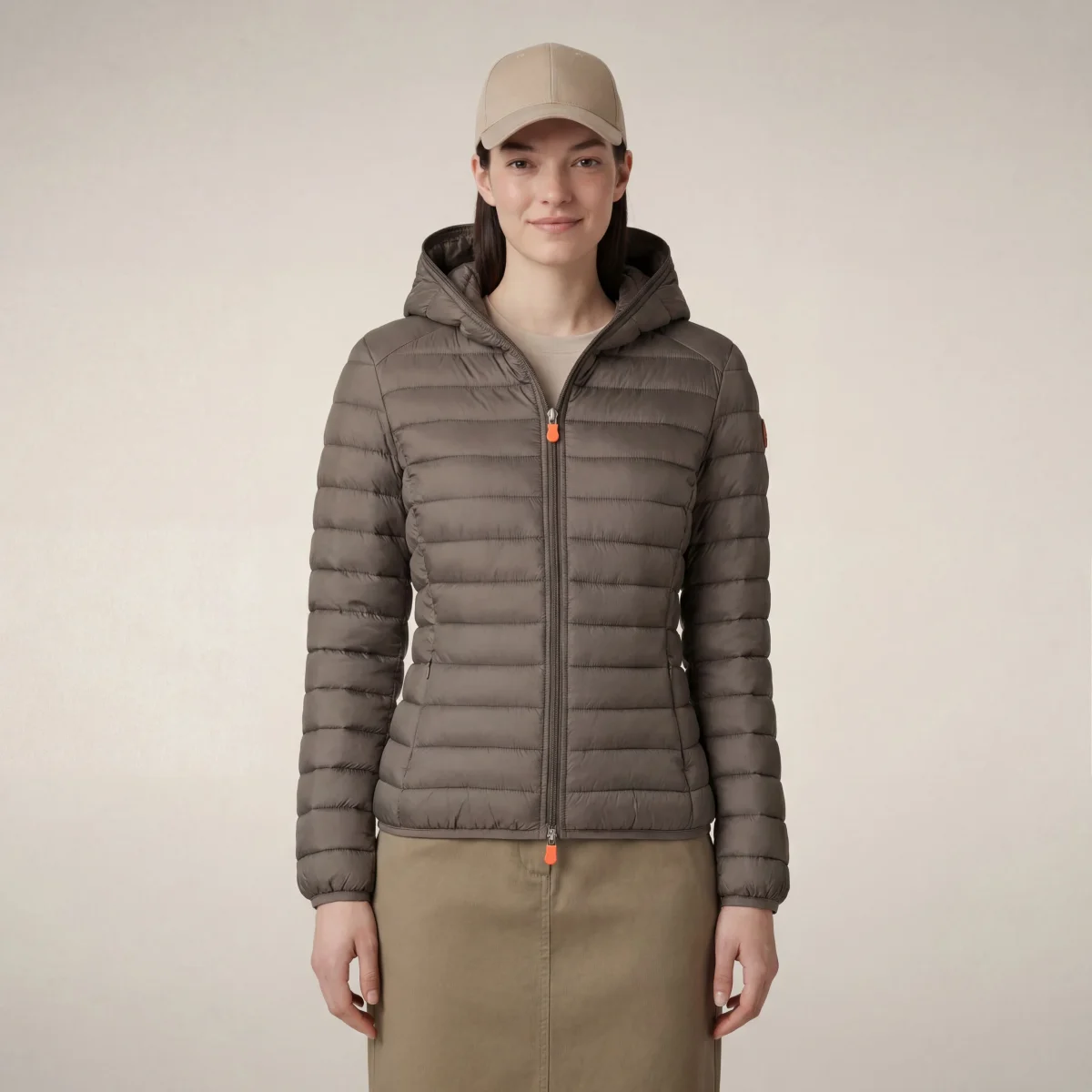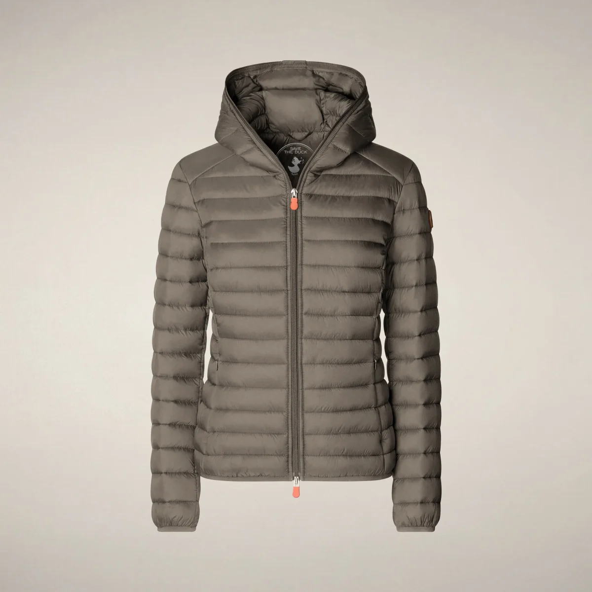 Piumino animal free con cappuccio donna Daisy Grigio elefante