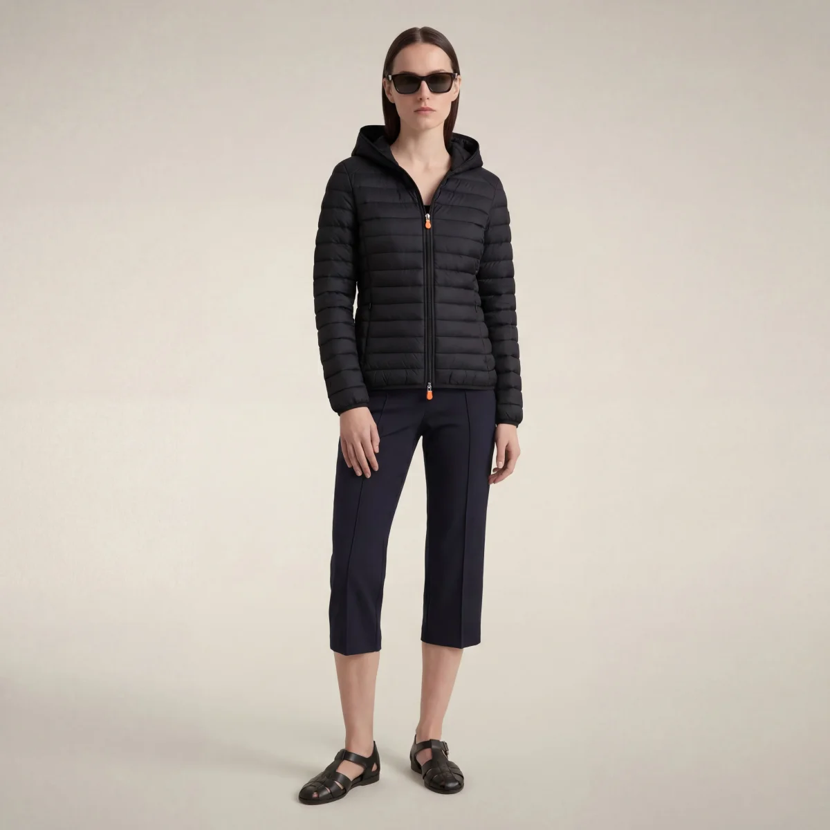 Piumino animal free con cappuccio donna Daisy Nero