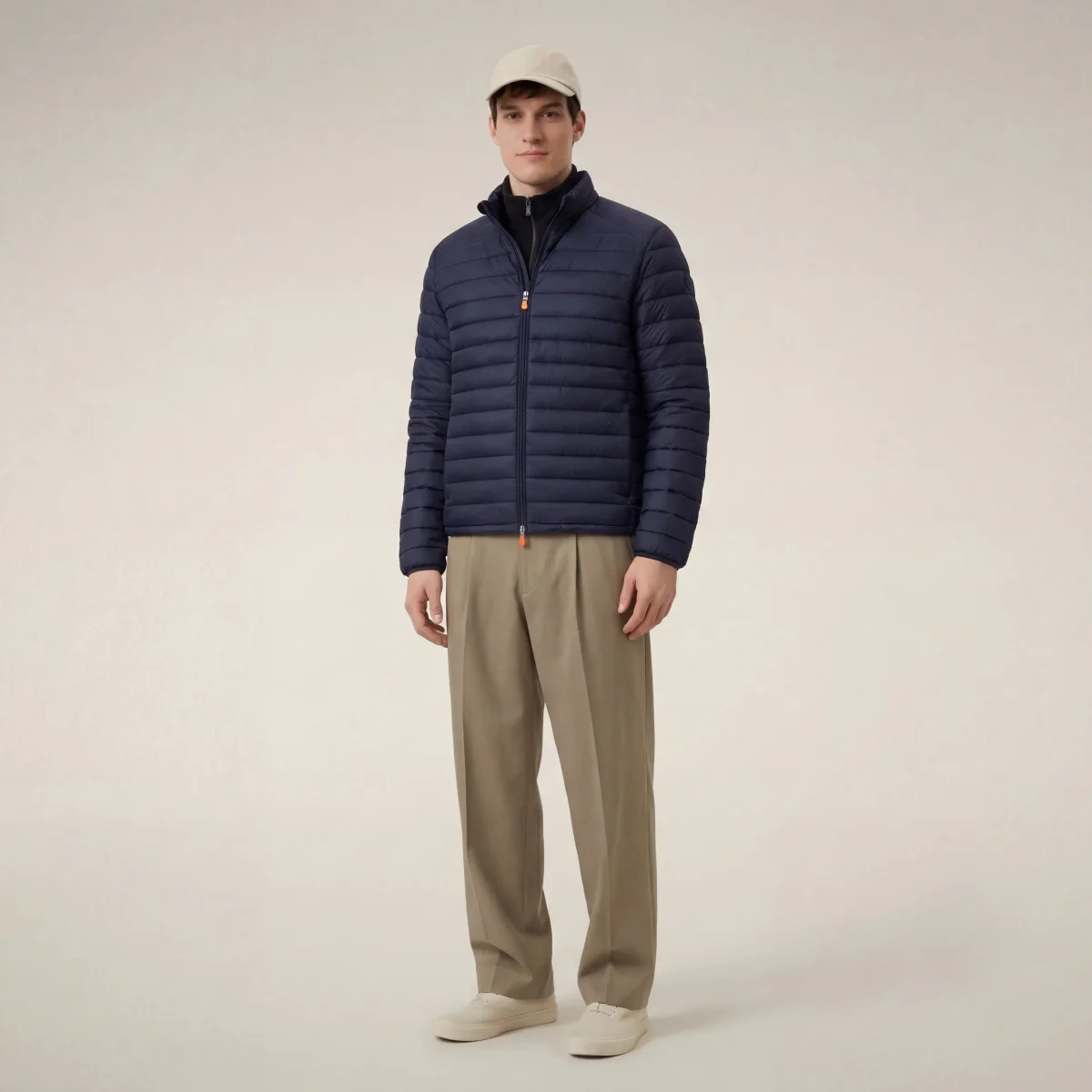 Bestseller dello stile Save The Duck, il piumino uomo modello Alexander è realizzato in nylon leggero con morbida imbottitura in Plumtech®. Tagliato con collo alto e tasche zippate, si distingue per il tiretto personalizzato e il logo rotondo sulla manica sinistra color arancione. Tutto il comfort di un piumino 100 grammi, in una versione 100% animal-free.