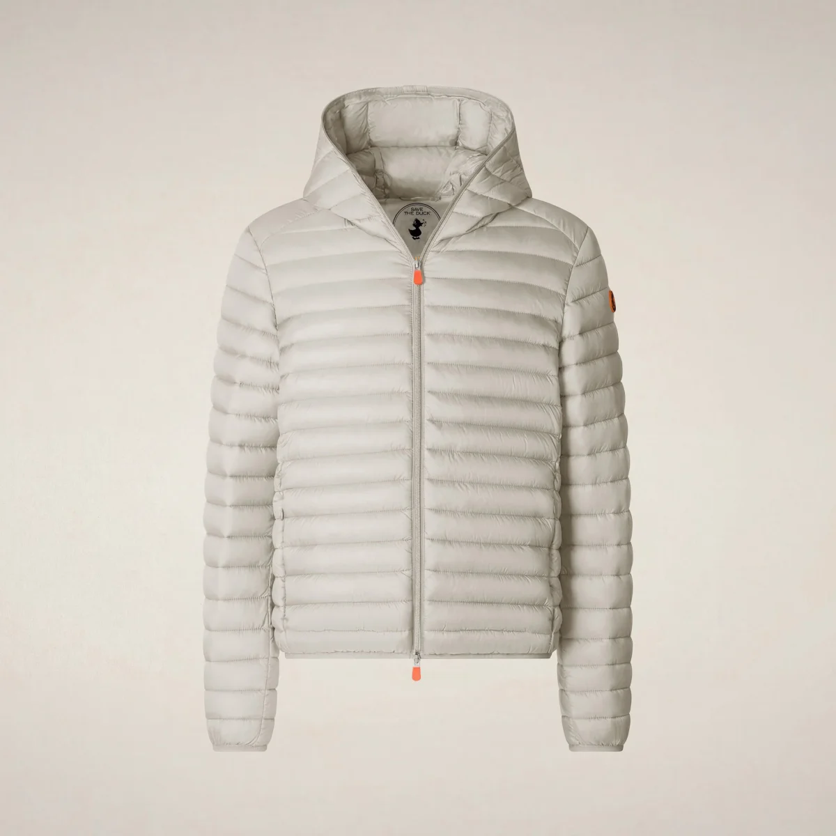 Bestseller della nostra Collezione Icons, il piumino animal-free uomo modello Donald unisce il design in nylon leggero con l’imbottitura in Plumtech®. Dotato di comodo cappuccio, chiusura a doppio cursore e tasche laterali, presenta polsi e fondo bordati in Lycra. Il capo si distingue per i tirazip personalizzati e il logo rotondo sulla manica sinistra, entrambi color arancione. L’alternativa Save The Duck al classico piumino 100 grammi.