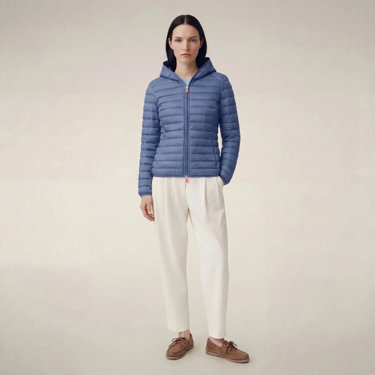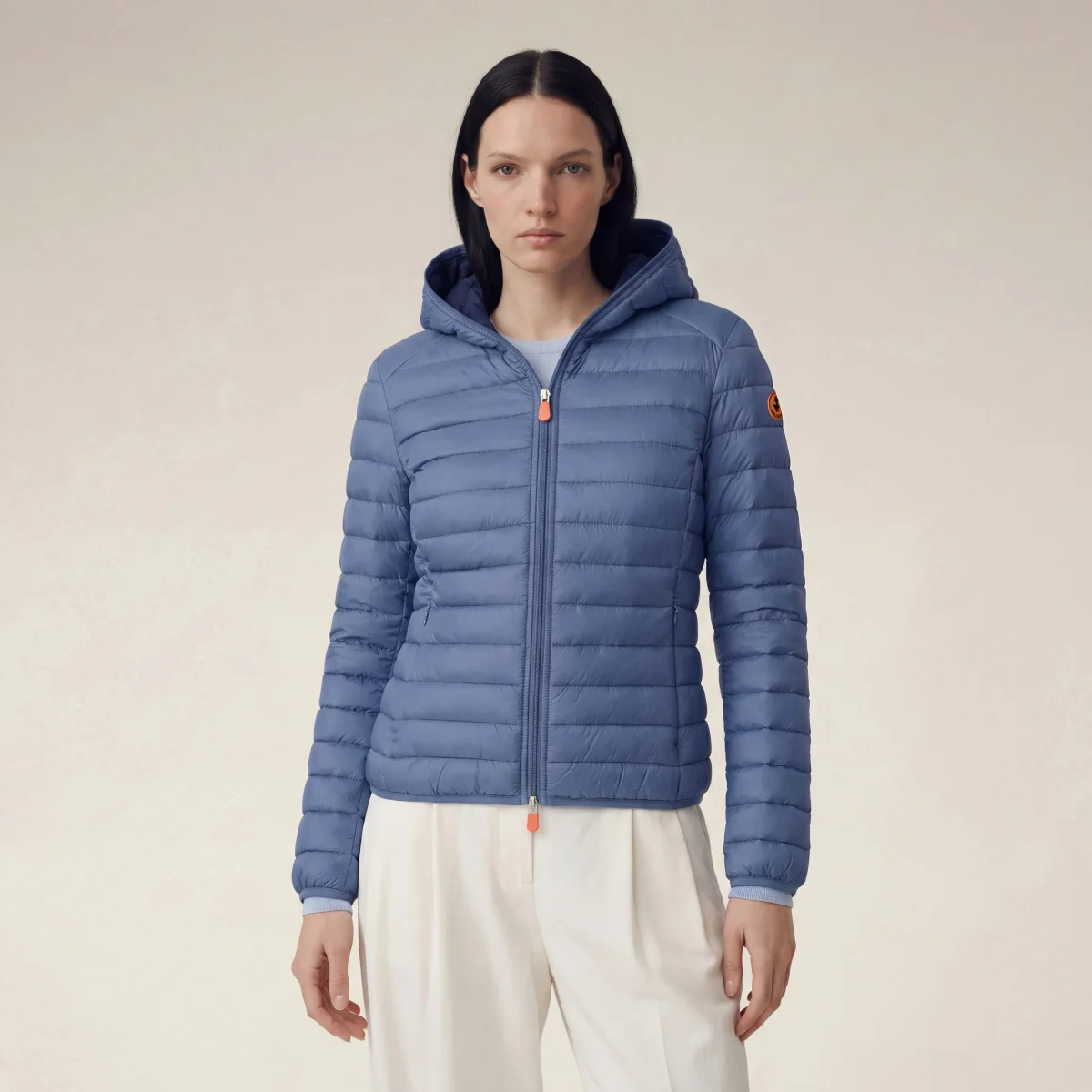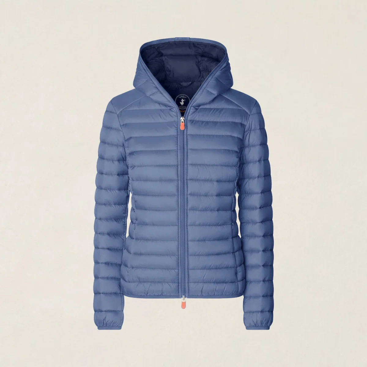 Bestseller dello stile Save The Duck, il piumino animal-free da donna modello Daisy unisce il leggero design in nylon con la morbida imbottitura in PLUMTECH®. Completo di cappuccio, chiusura a doppio cursore e tasche laterali con zip nascoste, è rifinito da polsi e fondo elasticizzati. Il capo si distingue per il tirazip personalizzato e il logo tondo sulla manica sinistra arancioni. Tutto il comfort di un piumino 100 grammi, in una versione 100% animal-free.