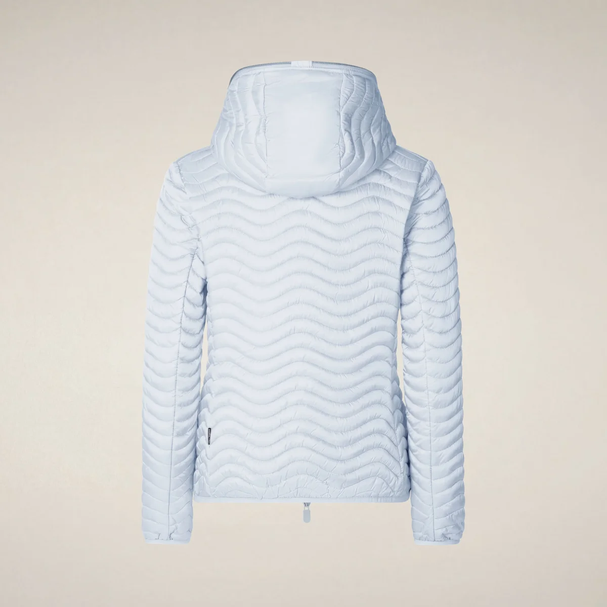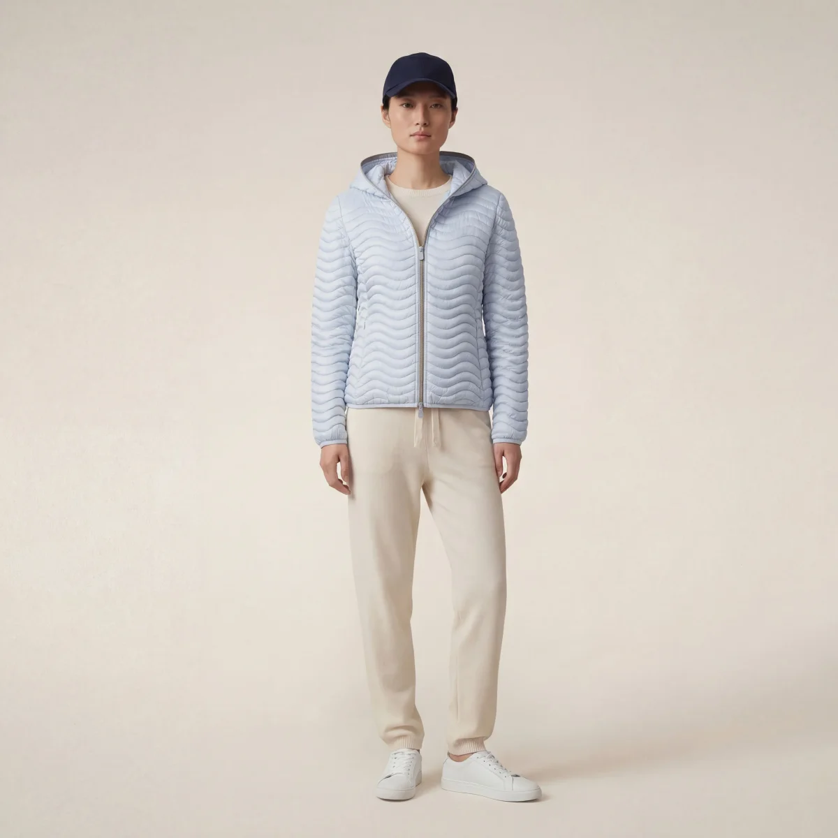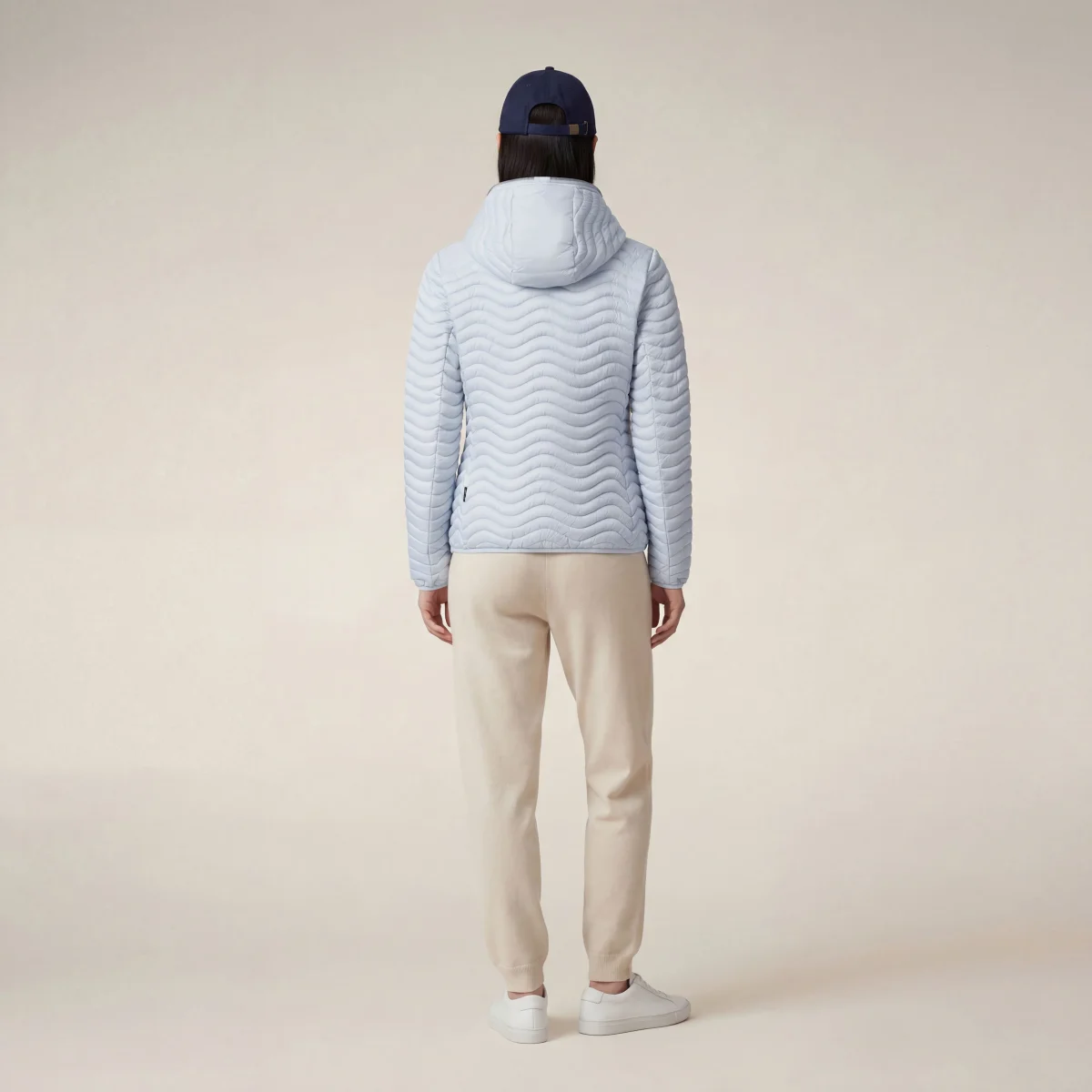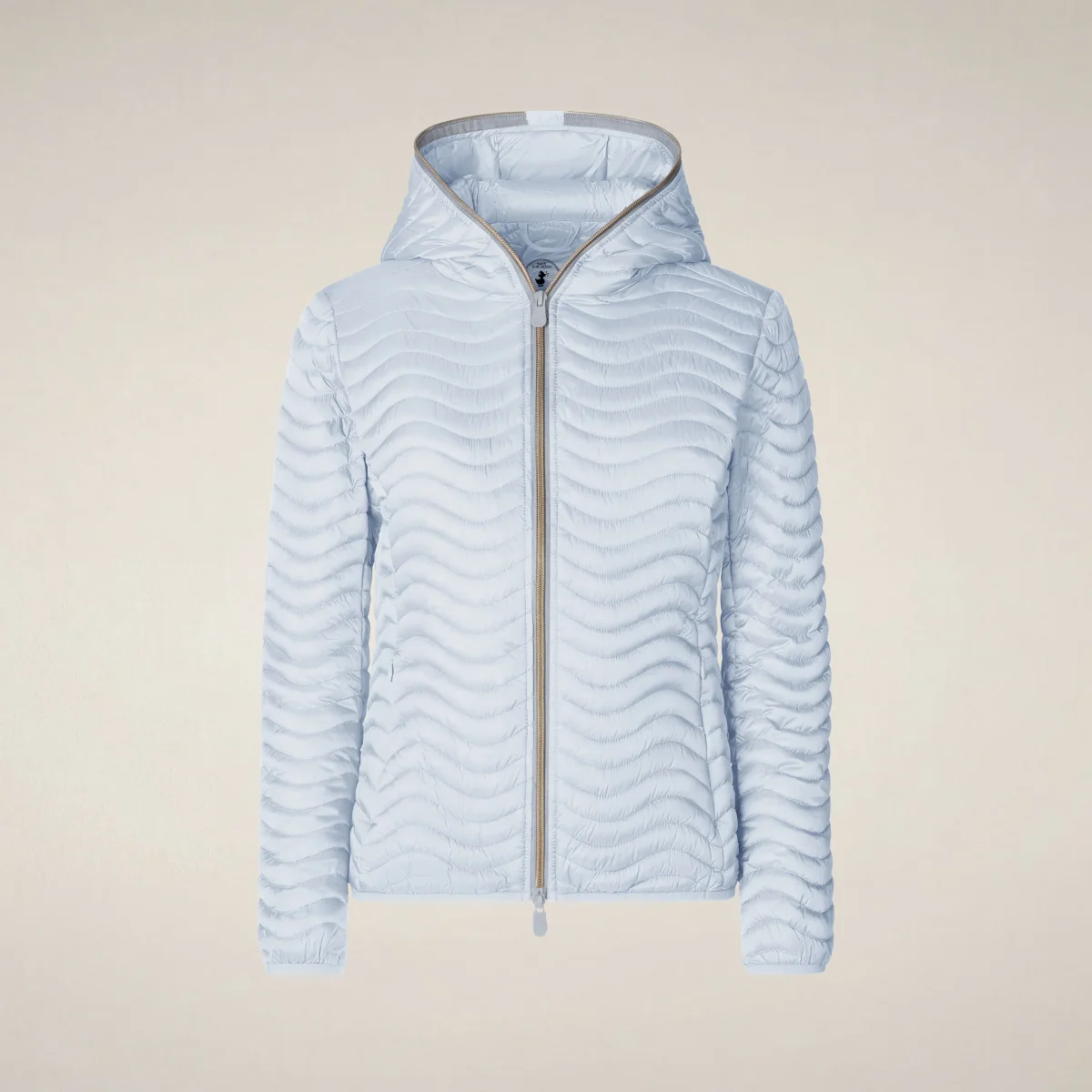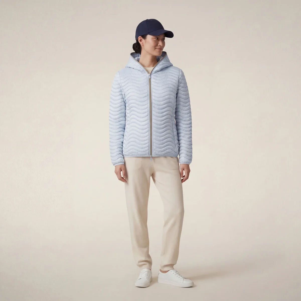 Il piumino con cappuccio donna modello Melody reinterpreta un classico Save The Duck con un’originale trapunta ondulata. Comodo e leggero, presenta zip centrale a doppio cursore e tasche laterali con zip invisibili. Il badge rotondo sulla manica e i tiretti personalizzati completano il capo con una nota distintiva.