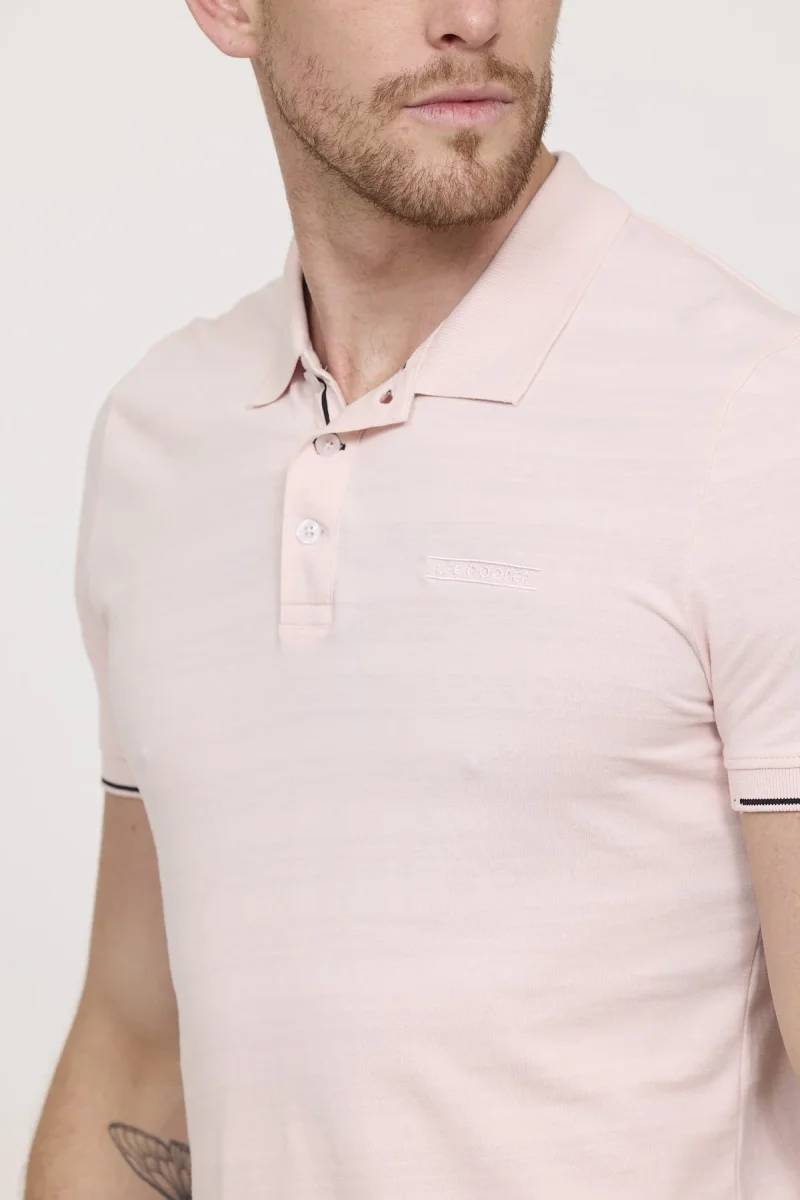 Polo regular en 100% coton, manches courtes, avec un jeu de tissage effet marinière et des détails contrastés, pour un style à la fois élégant et intemporel.