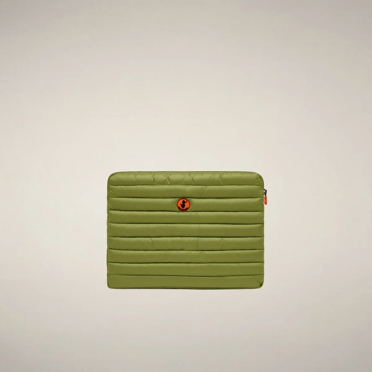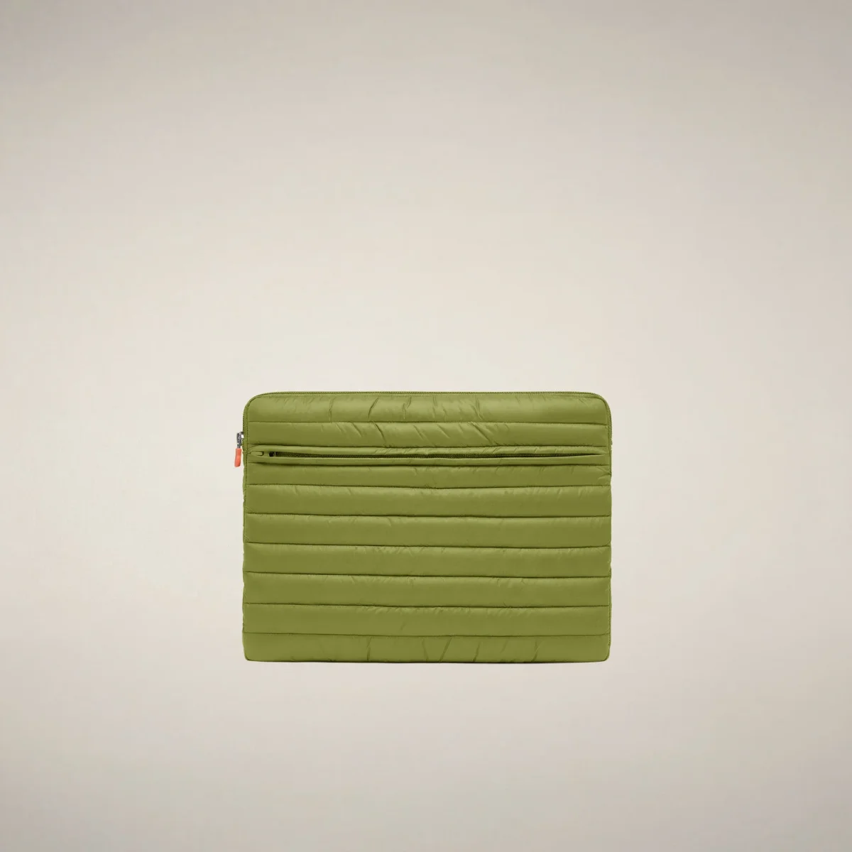 Spazioso quanto basta per tenere al sicuro laptop e tablet fino a 15 pollici, il porta pc Vesta è chiuso da una zip superiore con tiretto personalizzato. Il design morbido e trapuntato, completo di logo tondo arancione, riprende i dettagli dei nostri piumini più iconici.