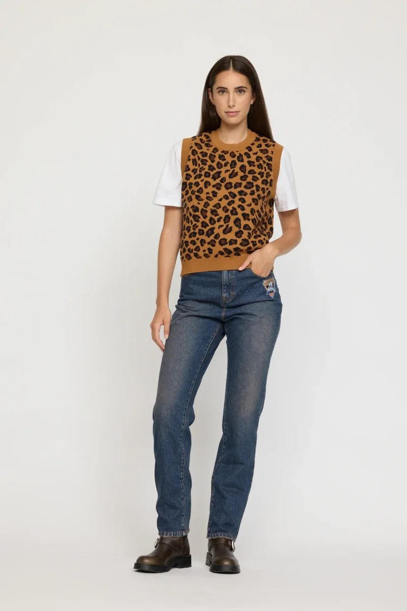 Avec sa coupe regular, il se porte aussi bien sur une chemise qu’en superposition sur un t-shirt, apportant structure et style sans alourdir la silhouette. Le motif léopard ajoute du caractère à ce modèle sans manches, tout en conservant une allure urbaine et moderne.