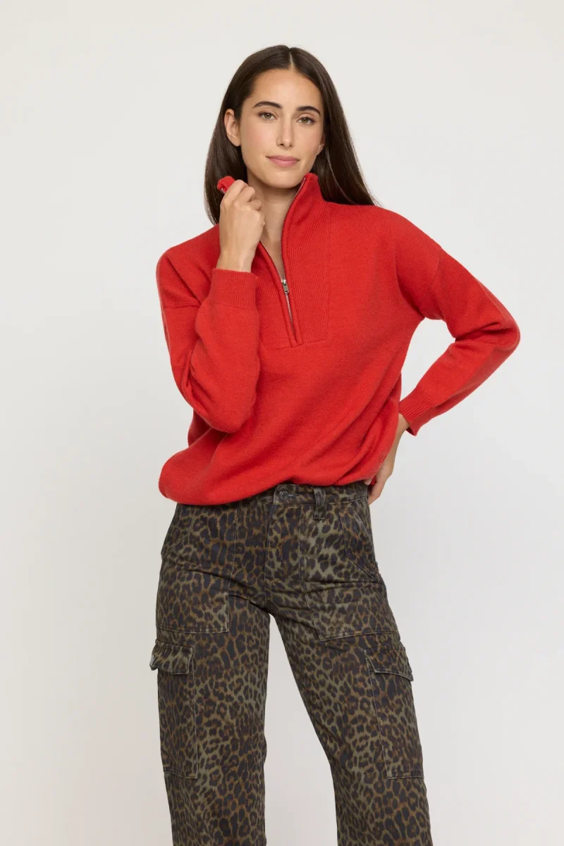 Doté d’un col montant zippé, de manches longues et d’une coupe comfort, il offre une silhouette décontractée sans sacrifier l’élégance. Le zip au col permet de moduler le style selon l’envie, fermé pour une allure structurée ou entrouvert pour une touche plus décontractée.