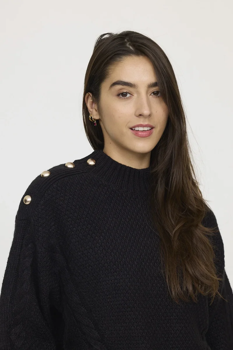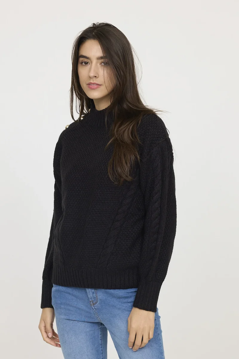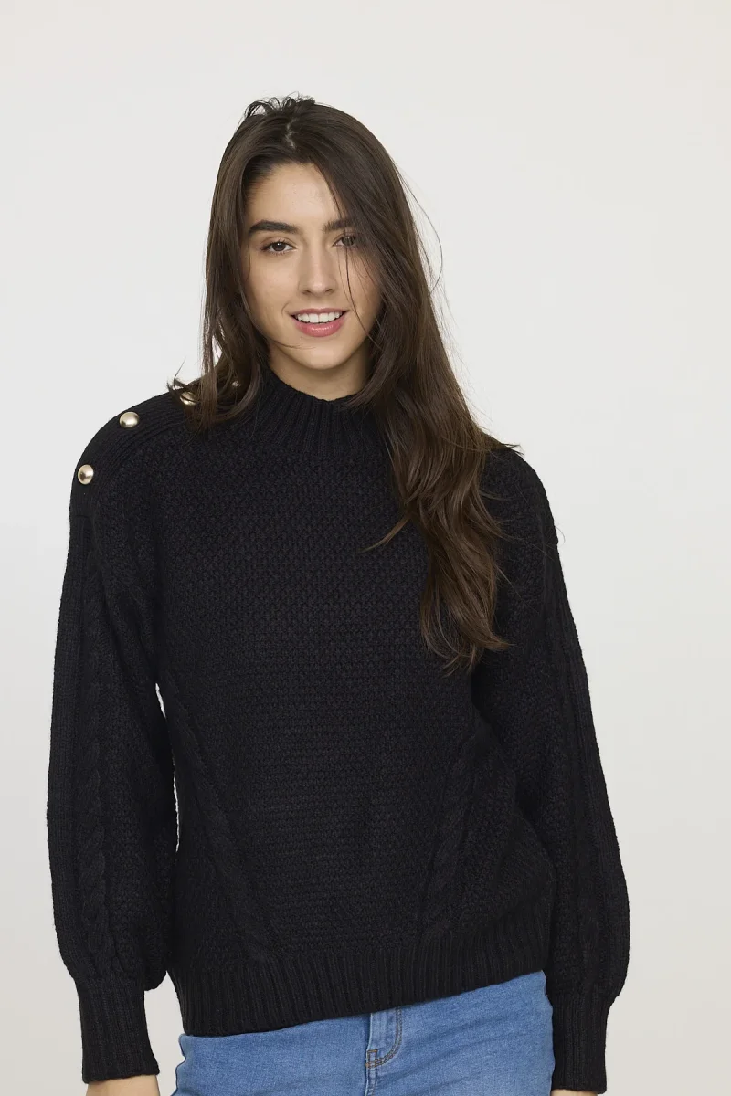 Pull en maille col rond confortable et stylé avec ornement sur l’épaule droite, assurant une protection supplémentaire contre le froid et une allure élégante. Le mannequin mesure 1m70 et porte la taille S