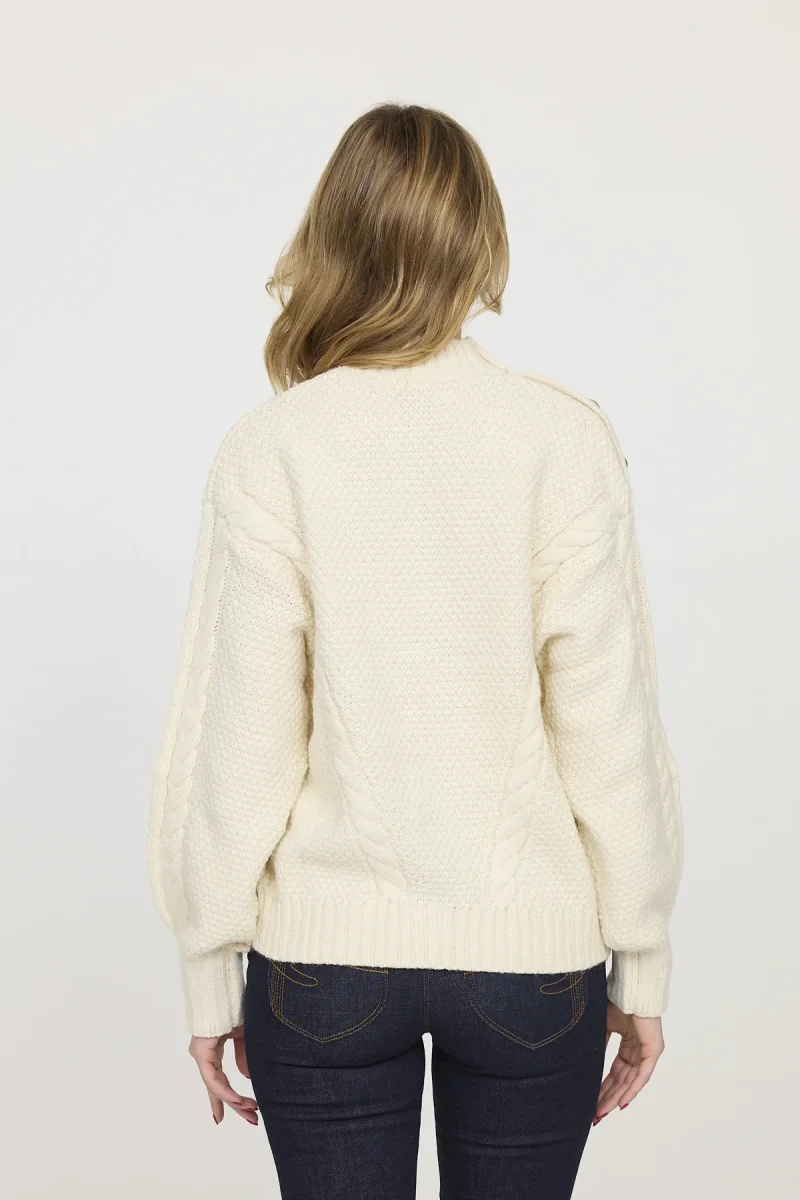 Pull en maille col rond confortable et stylé avec ornement sur l’épaule droite, assurant une protection supplémentaire contre le froid et une allure élégante.
