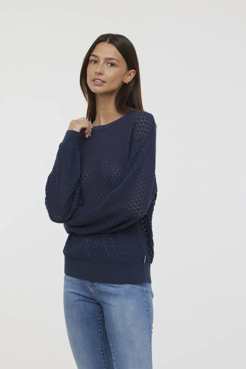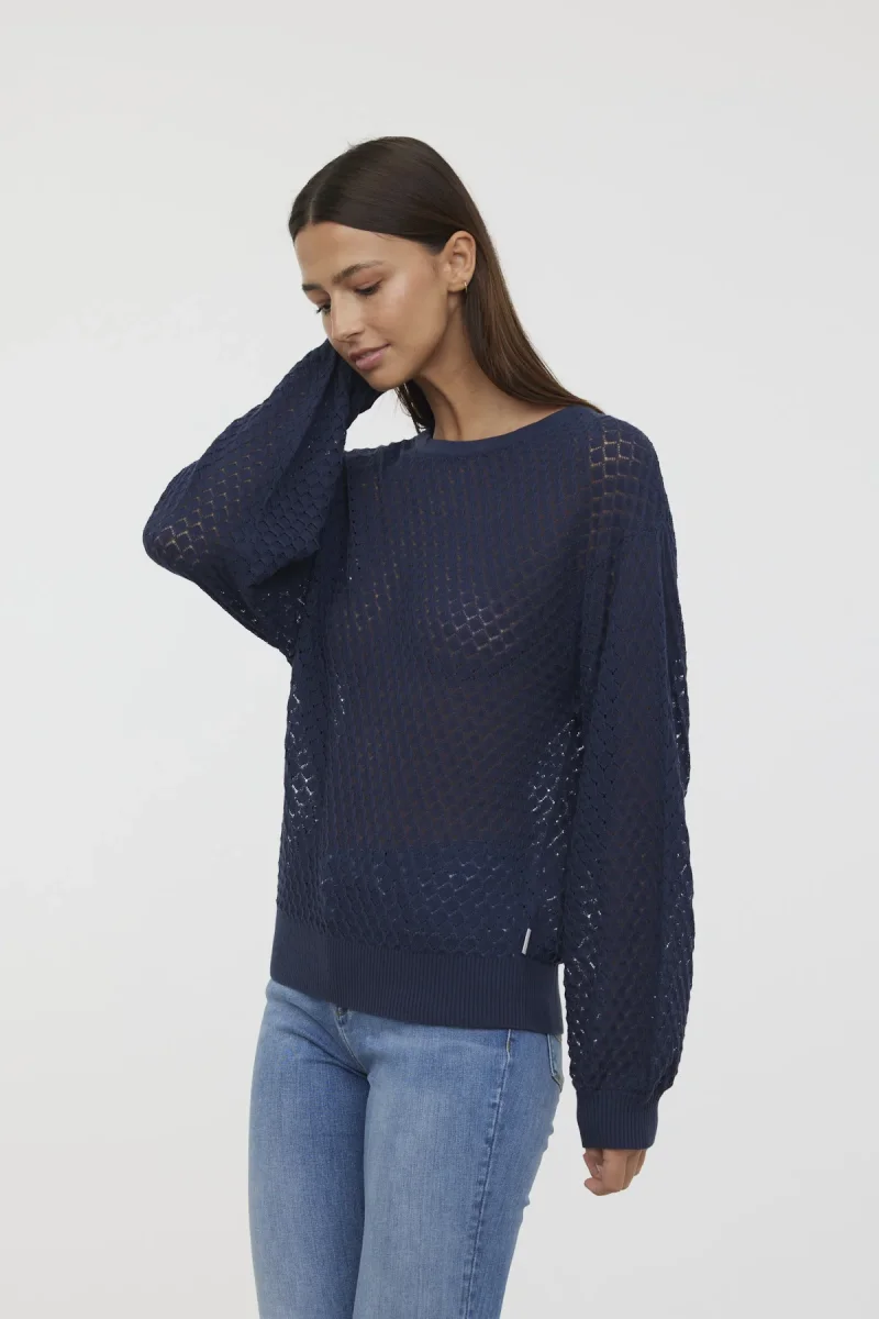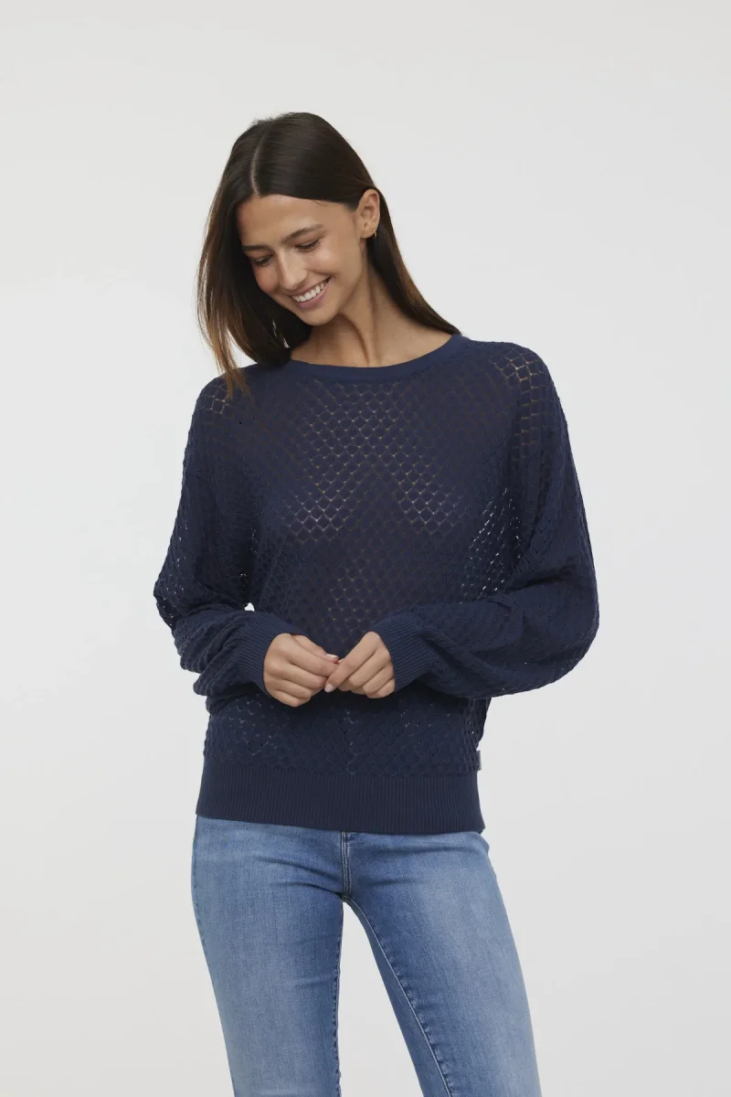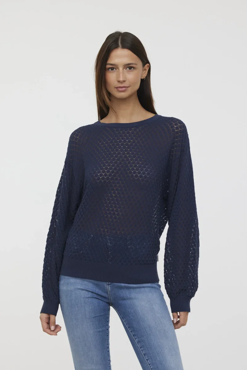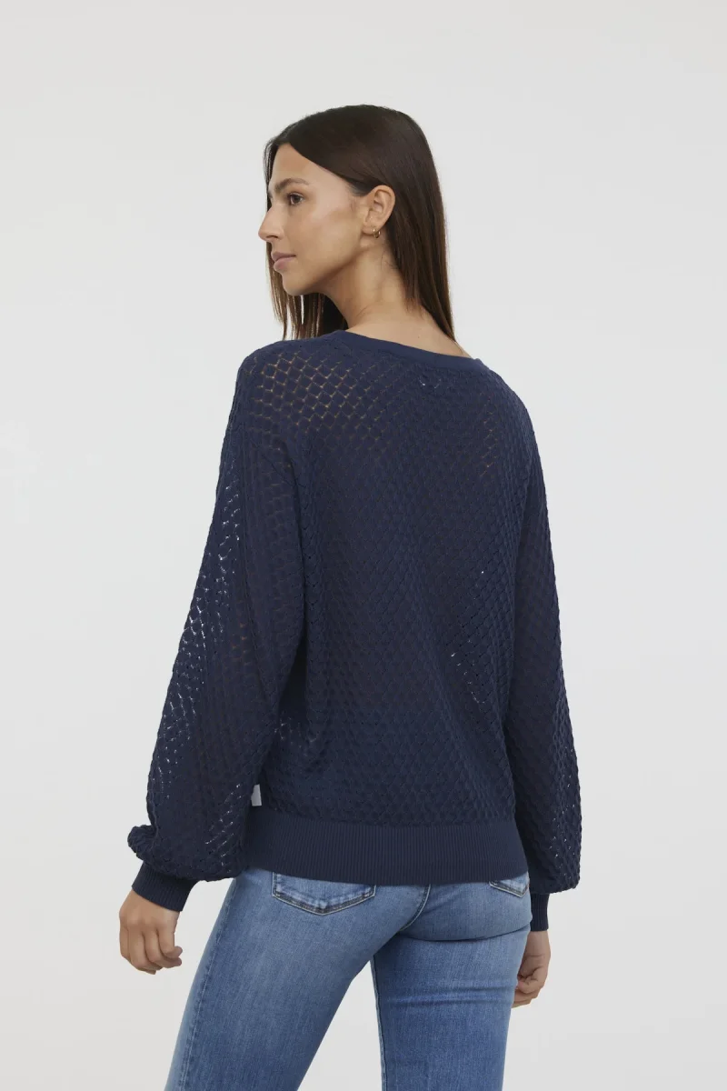 Pull col rond manches longues boufantes maille fantaisie ajourée