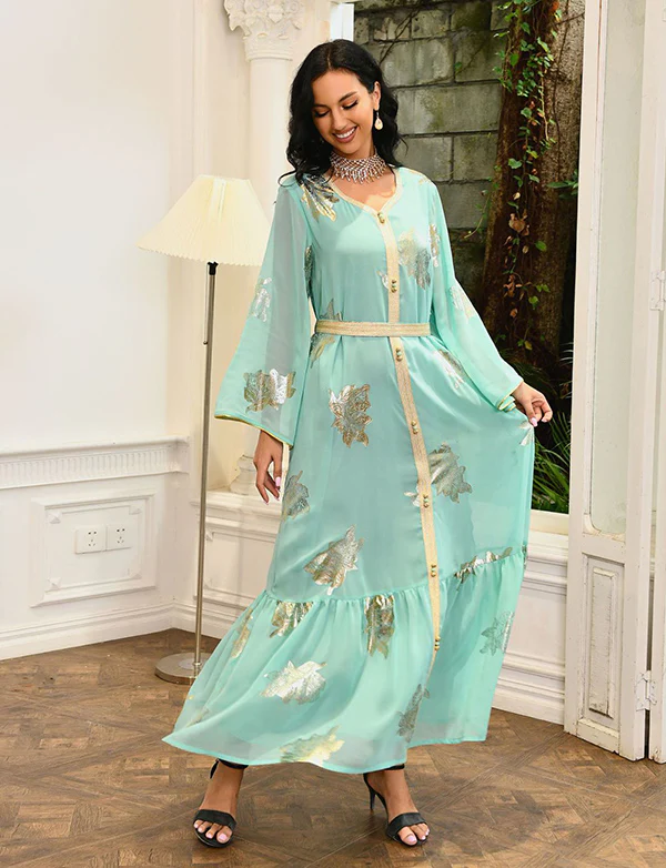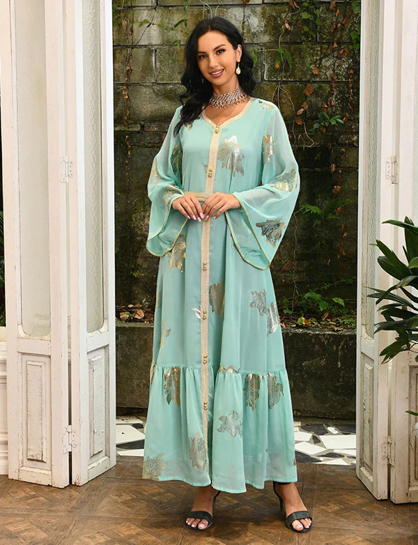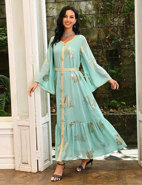A-Line Manches Longues imprimées Arabe Maxi Abaya Robe