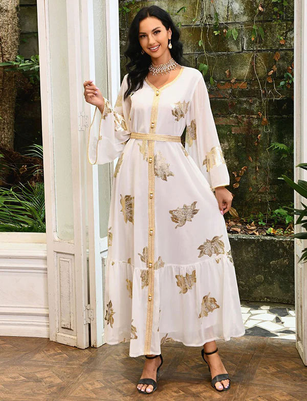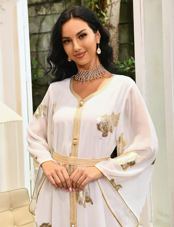 Broderie à paillettes Blanc Caftan Femmes Robe Arabe