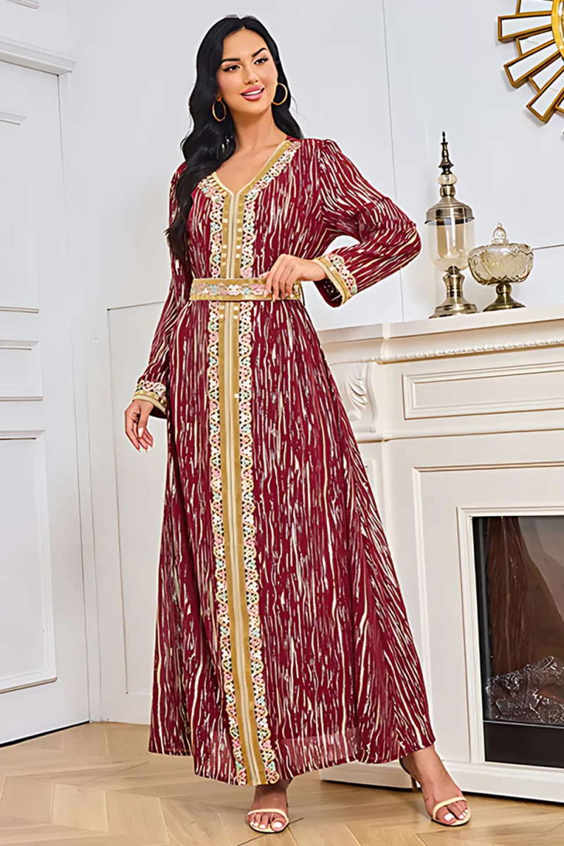 Bourgogne Col en V Broderie Robe Caftan